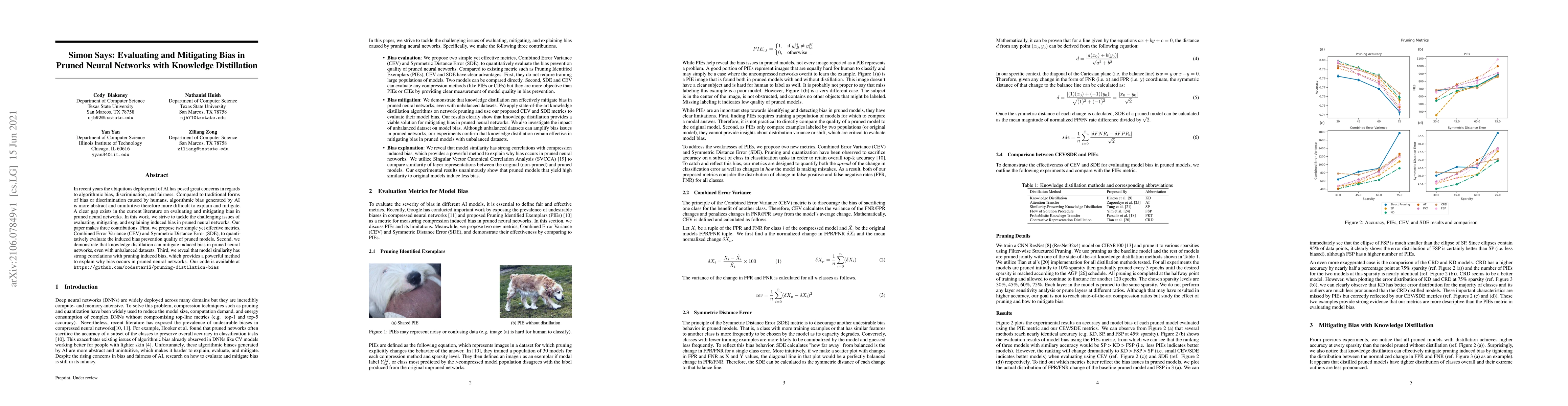 This paper proposes new metrics to evaluate bias in pruned neural networks and demonstrates that knowledge distillation can mitigate such bias, even with unbalanced datasets. It also finds a strong correlation between model similarity and pruning-induced bias, offering insights into bias occurrence.