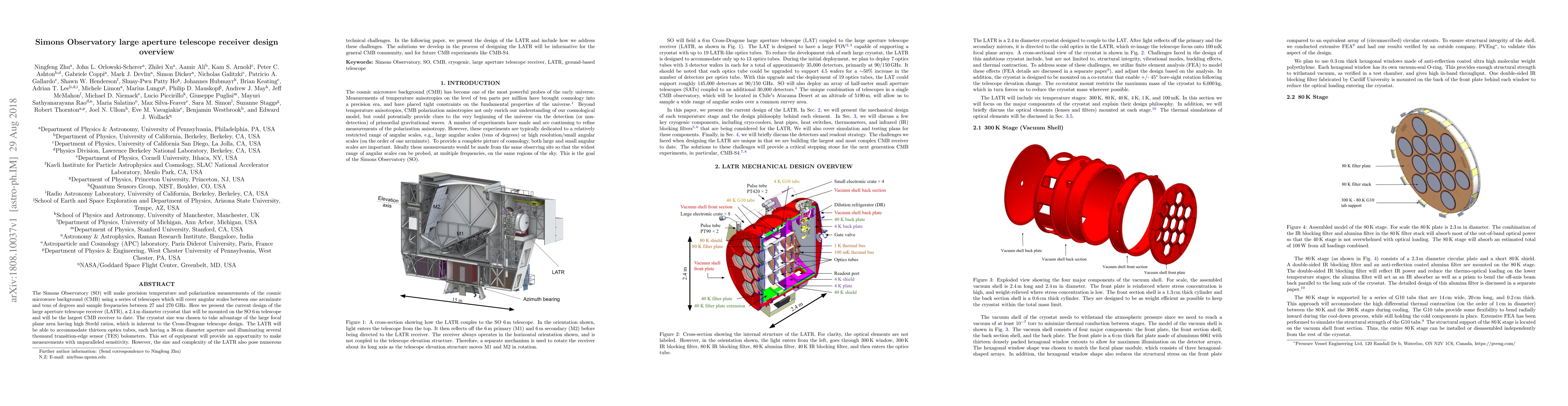 The Simons Observatory's Large Aperture Telescope Receiver (LATR) is a 2.4 m diameter cryostat designed to accommodate thirteen optics tubes and thousands of TES bolometers for precision CMB measurements. The LATR addresses significant technical challenges inherent to its size and complexity, providing solutions that will benefit future CMB experiments.