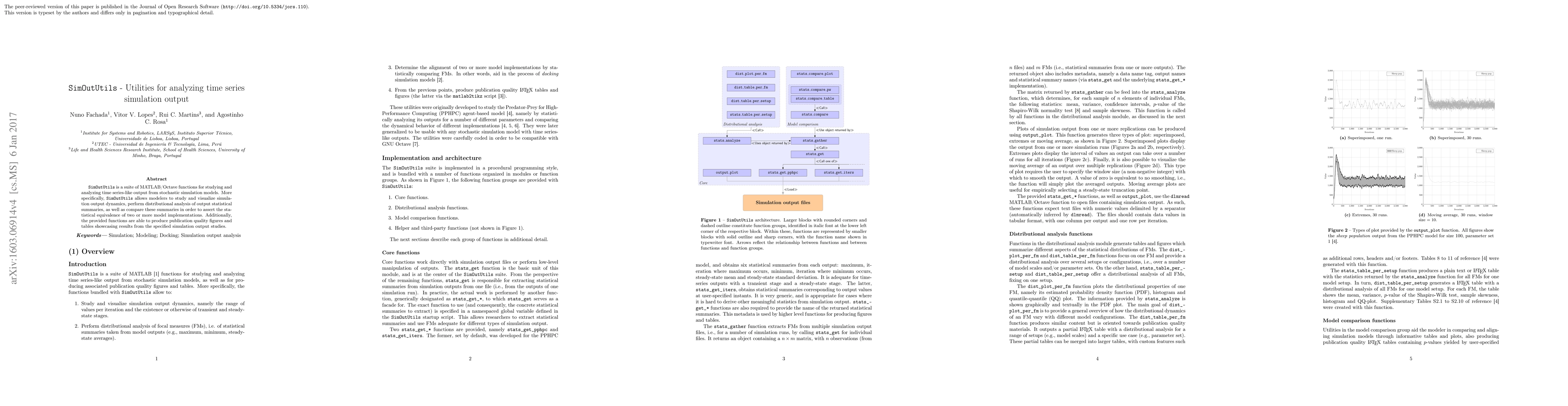 SimOutUtils is a tool for analyzing time series simulation output in MATLAB/Octave, allowing modelers to study dynamics, compare statistical equivalence of models, and produce publication-quality figures and tables.