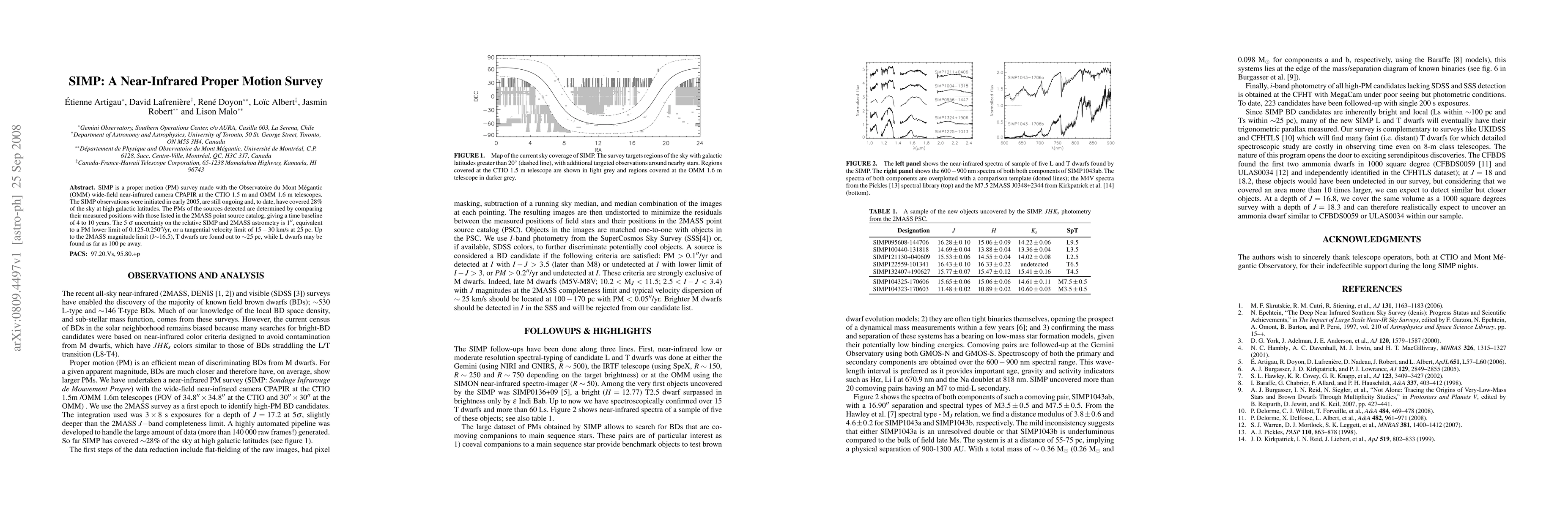 The SIMP survey measures proper motion in near-infrared light, detecting T dwarfs up to 25pc away and L dwarfs as far as 100pc with a 1