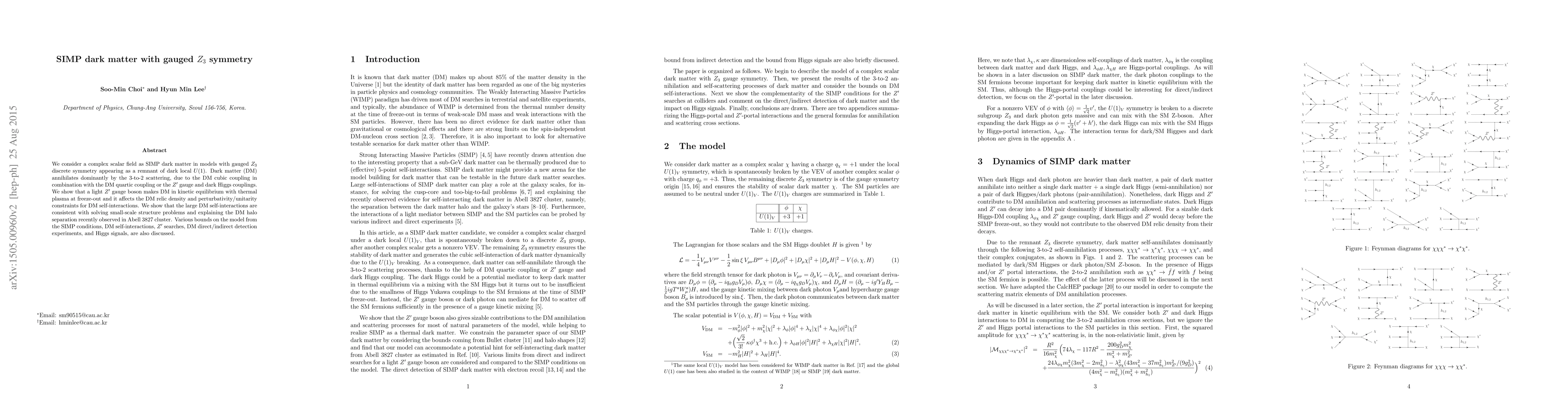 This paper explores a complex scalar field as SIMP dark matter within models featuring gauged $Z_3$ symmetry, demonstrating that a light $Z'$ gauge boson facilitates kinetic equilibrium and affects relic density. It shows that large self-interactions can resolve small-scale structure issues and aligns with observed DM halo separations.