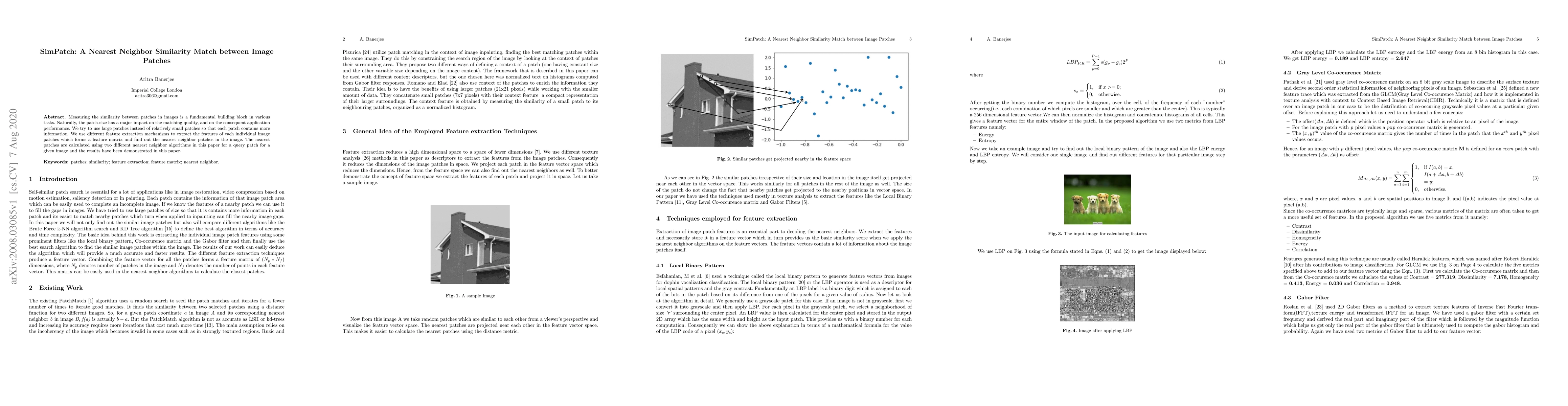 SimPatch employs large image patches to enhance feature extraction and uses nearest neighbor algorithms to match similar patches, improving matching quality and application performance. The paper demonstrates the effectiveness of these methods through various experiments.