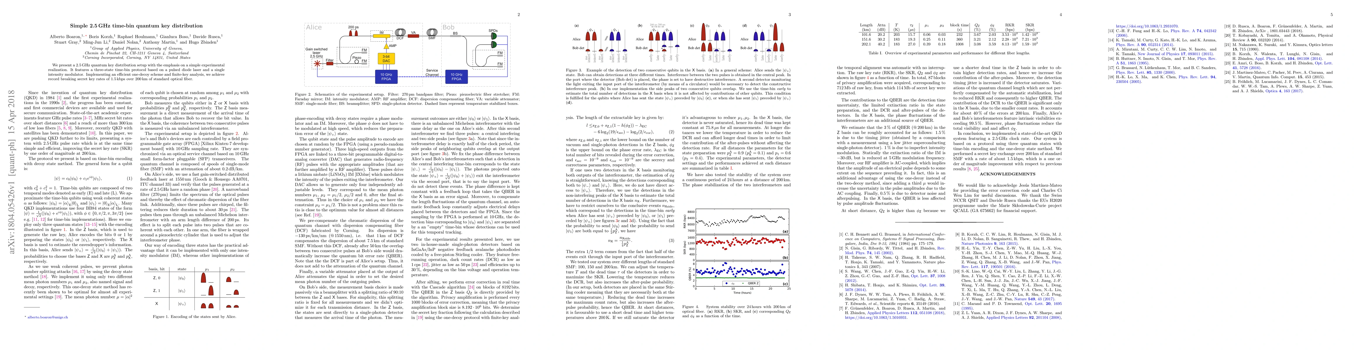 We present a 2.5 GHz quantum key distribution setup with the emphasis on a simple experimental realization. It features a three-state time-bin protocol based on a pulsed diode laser and a single intensity modulator. Implementing an efficient one-decoy scheme and finite-key analysis, we achieve record breaking secret key rates of 1.5 kbps over 200 km of standard optical fiber.
