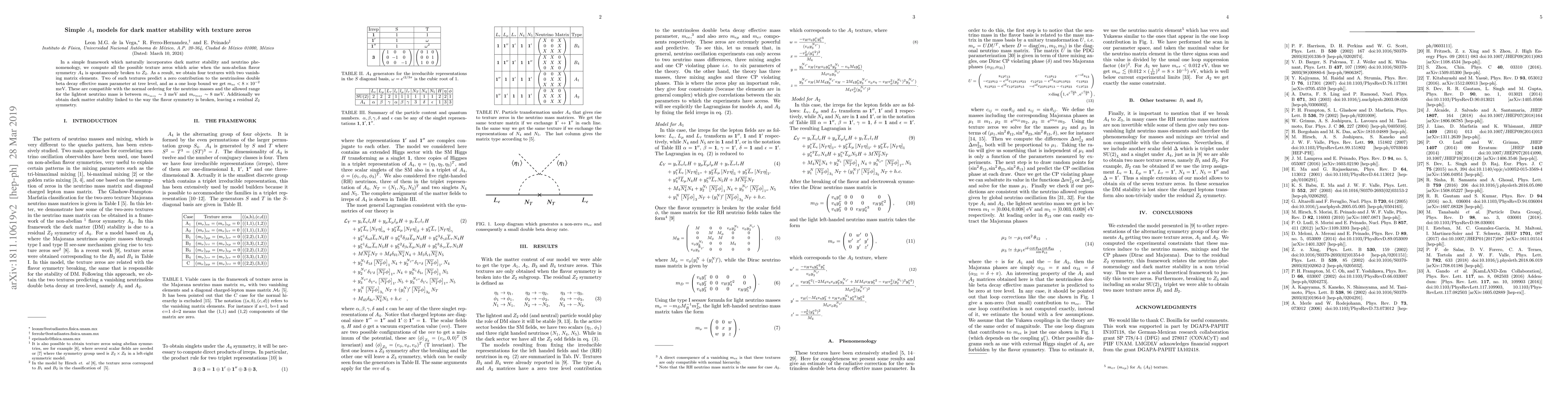 Researchers found four possible textures for dark matter stability with A4 models, predicting a low effective mass parameter for neutrinoless double beta decay and stable dark matter.