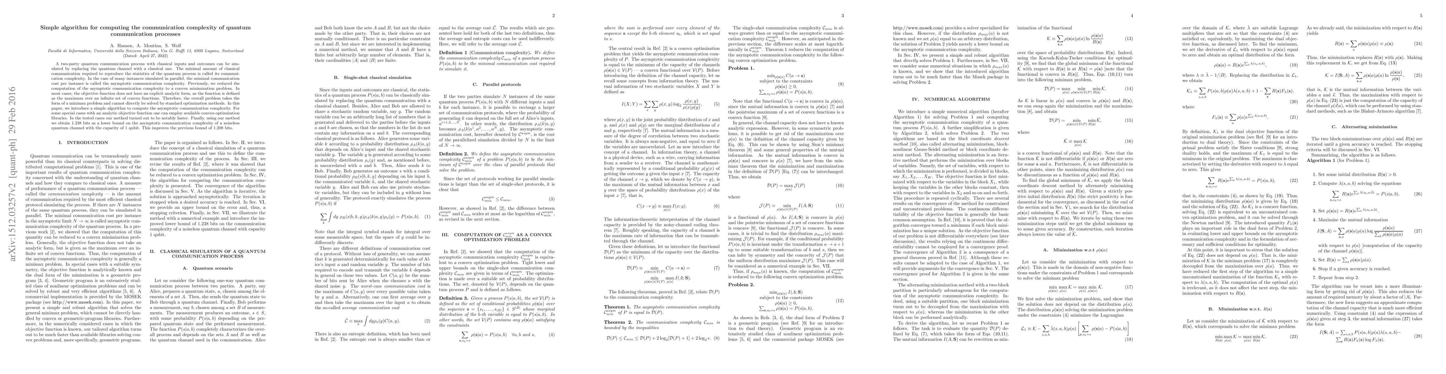 This paper presents a novel algorithm to compute the asymptotic communication complexity of quantum communication processes, which was previously a challenging minimax problem. The method significantly outperforms existing techniques, offering a lower bound of 1.238 bits for the complexity of a noiseless quantum channel with a 1-qubit capacity, surpassing the previous bound of 1.208 bits.
