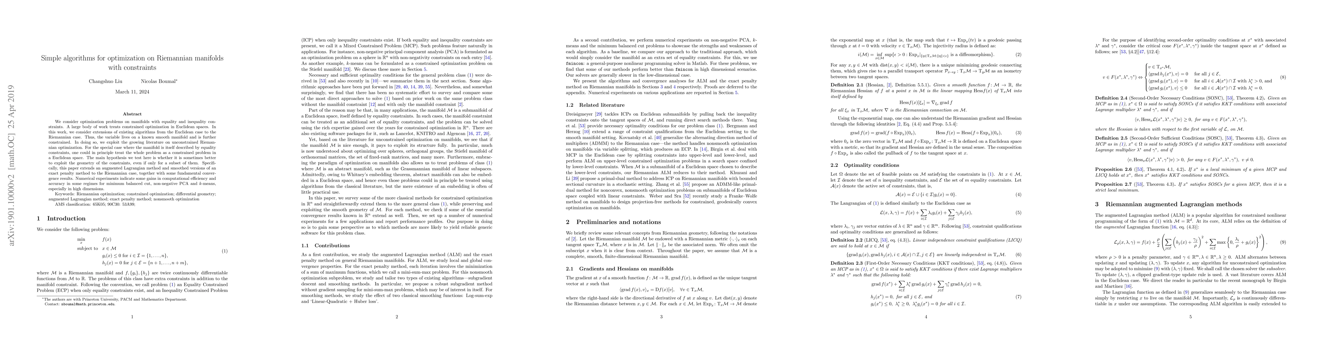 This paper extends optimization algorithms to Riemannian manifolds with constraints, showing gains in computational efficiency and accuracy for certain problems in high dimensions.