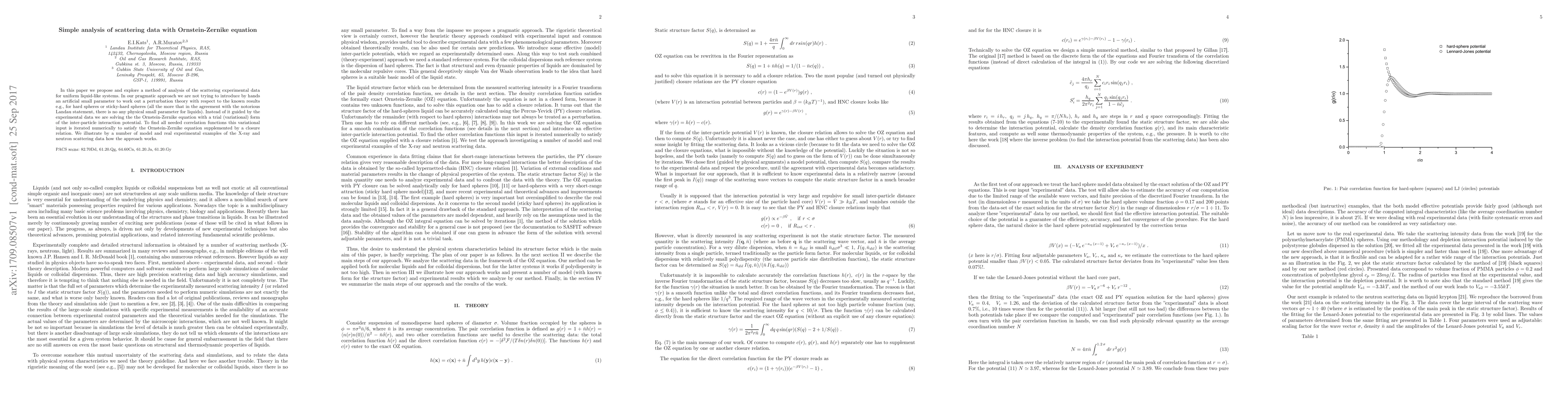 Researchers propose a new method to analyze scattering data using the Ornstein-Zernike equation without artificially introducing small parameters, instead iterating a trial inter-particle interaction potential to satisfy the equation.