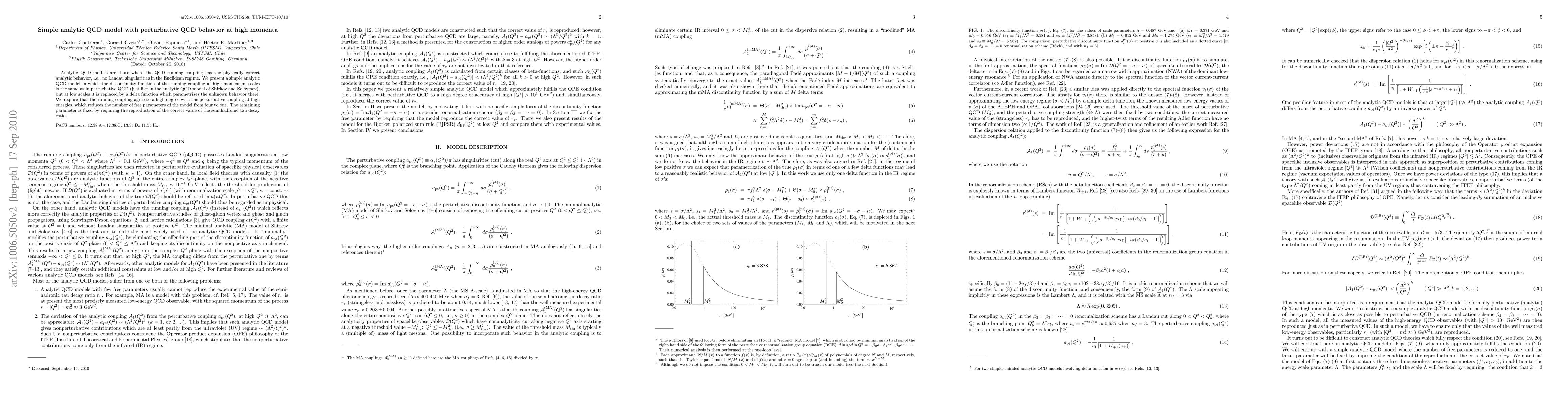 Analytic QCD models are those where the QCD running coupling has the physically correct analytic behavior, i.e., no Landau singularities in the Euclidean regime. We present a simple analytic QCD model in which the discontinuity function of the running coupling at high momentum scales is the same as in perturbative QCD (just like in the analytic QCD model of Shirkov and Solovtsov), but at low scales it is replaced by a delta function which parametrizes the unknown behavior there. We require that the running coupling agree to a high degree with the perturbative coupling at high energies, which reduces the number of free parameters of the model from four to one. The remaining parameter is fixed by requiring the reproduction of the correct value of the semihadronic tau decay ratio.