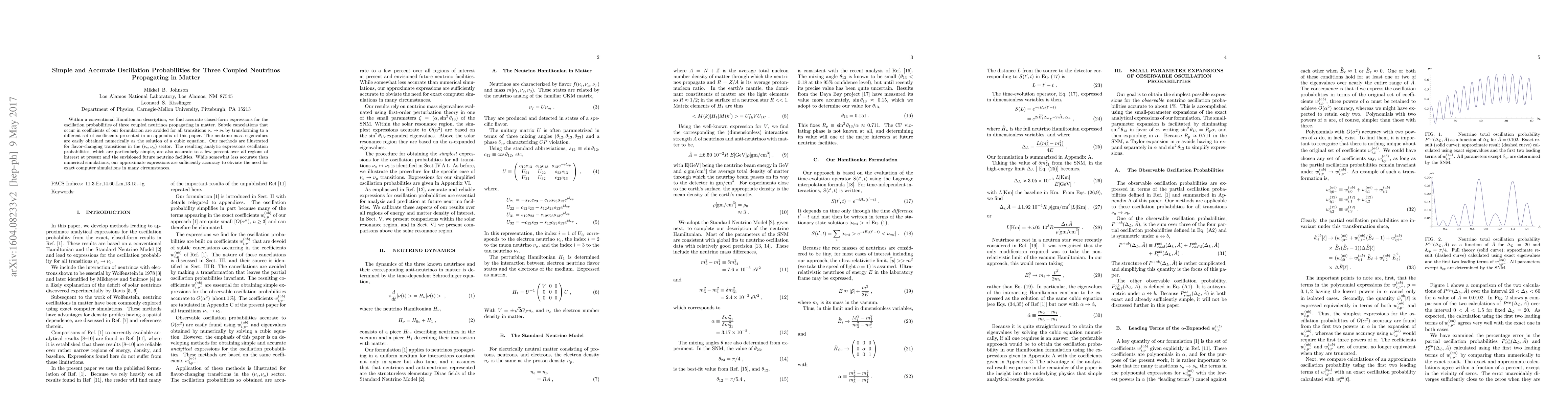 Within a conventional Hamiltonian description, we find accurate closed-form expressions for the oscillation probabilities of three coupled neutrinos propagating in matter. Subtle cancelations that occur in coefficients of our formulation are avoided for all transitions $\nu_a \to \nu_b$ by transforming to a different set of coefficients presented in an appendix of this paper. The neutrino mass eigenvalues are easily obtained numerically as the solution of a cubic equation. Our methods are illustrated for flavor-changing transitions in the $(\nu_e,\nu_\mu)$ sector. The resulting analytic expressions oscillation probabilities, which are particularly simple, are also accurate to a few percent over all regions of interest at present and the envisioned future neutrino facilities. While somewhat less accurate than numerical simulations, our approximate expressions are sufficiently accuracy to obviate the need for exact computer simulations in many circumstances.