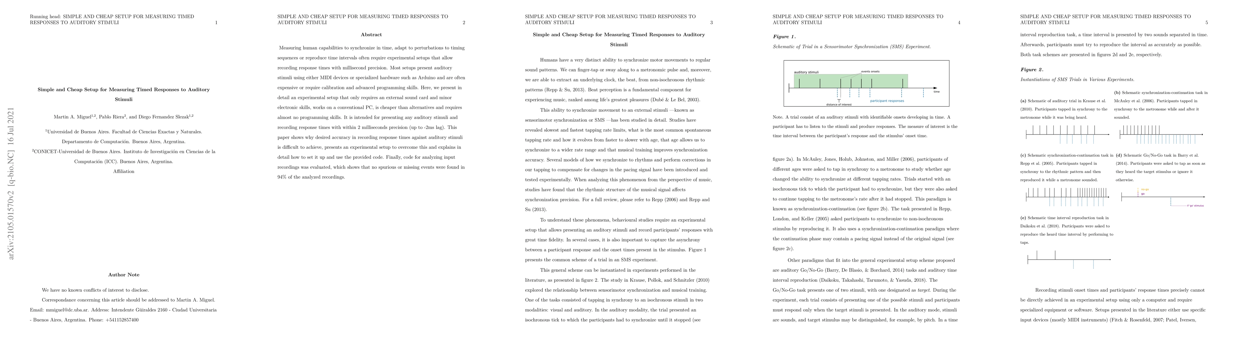 Researchers developed an affordable and user-friendly experimental setup to record tapping responses synchronized with auditory stimuli with millisecond precision. Their setup uses a conventional PC, external sound card, and minimal programming skills, achieving 94% accuracy in analyzing recorded responses.