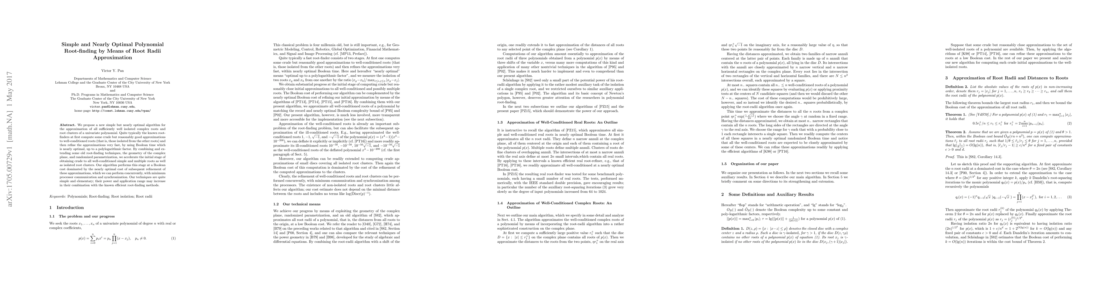 This paper introduces a new algorithm for nearly optimal polynomial root-finding that efficiently approximates well-isolated roots and clusters using a combination of old techniques, complex plane geometry, and randomized parametrization. The algorithm accelerates the initial stage of root approximation while maintaining a nearly optimal computational cost.