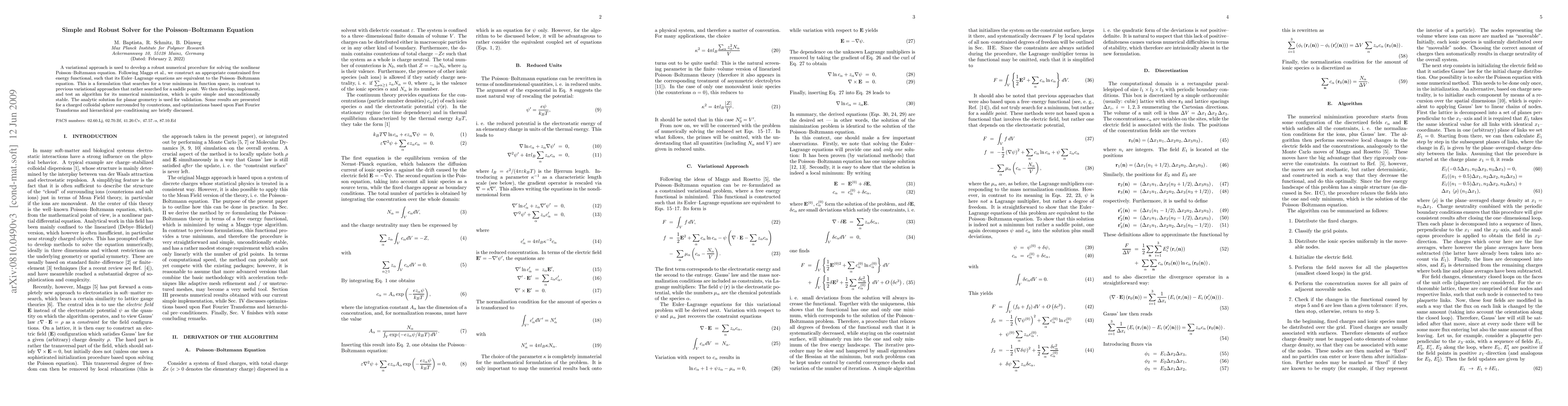 A new algorithm for solving the Poisson-Boltzmann equation was developed using a combination of numerical methods and analytical techniques.