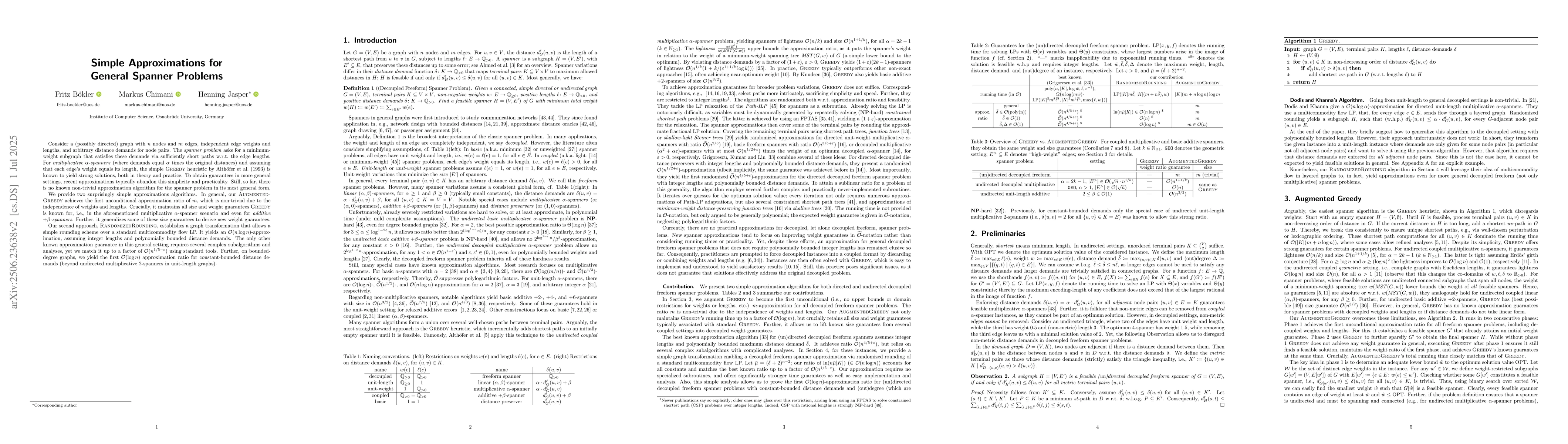 Consider a graph with n nodes and m edges, independent edge weights and lengths, and arbitrary distance demands for node pairs. The spanner problem asks for a minimum-weight subgraph that satisfies these demands via sufficiently short paths w.r.t. the edge lengths. For multiplicative alpha-spanners (where demands equal alpha times the original distances) and assuming that each edge's weight equals its length, the simple Greedy heuristic by Alth\"ofer et al. (1993) is known to yield strong solutions, both in theory and practice. To obtain guarantees in more general settings, recent approximations typically abandon this simplicity and practicality. Still, so far, there is no known non-trivial approximation algorithm for the spanner problem in its most general form. We provide two surprisingly simple approximations algorithms. In general, our Augmented Greedy achieves the first unconditional approximation ratio of m, which is non-trivial due to the independence of weights and lengths. Crucially, it maintains all size and weight guarantees Greedy is known for, i.e., in the aforementioned multiplicative alpha-spanner scenario and even for additive +beta-spanners. Further, it generalizes some of these size guarantees to derive new weight guarantees. Our second approach, Randomized Rounding, establishes a graph transformation that allows a simple rounding scheme over a standard multicommodity flow LP. It yields an O(n log n)-approximation, assuming integer lengths and polynomially bounded distance demands. The only other known approximation guarantee in this general setting requires several complex subalgorithms and analyses, yet we match it up to a factor of O(n^{1/5-eps}) using standard tools. Further, on bounded-degree graphs, we yield the first O(log n) approximation ratio for constant-bounded distance demands (beyond multiplicative 2-spanners in unit-length graphs).