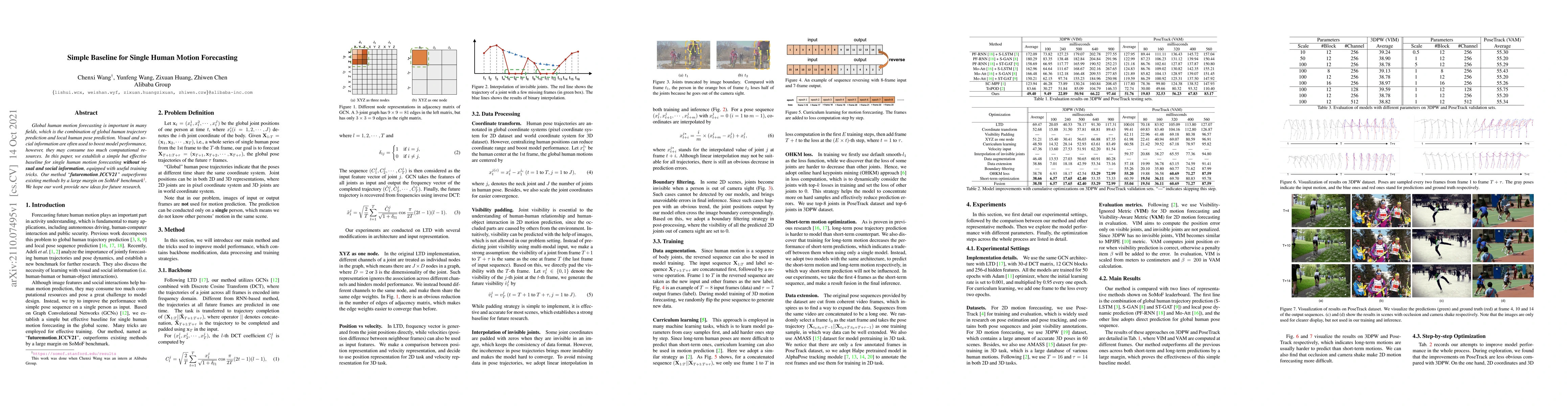 Global human motion forecasting is important in many fields, which is the combination of global human trajectory prediction and local human pose prediction. Visual and social information are often used to boost model performance, however, they may consume too much computational resource. In this paper, we establish a simple but effective baseline for single human motion forecasting without visual and social information, equipped with useful training tricks. Our method "futuremotion_ICCV21" outperforms existing methods by a large margin on SoMoF benchmark. We hope our work provide new ideas for future research.