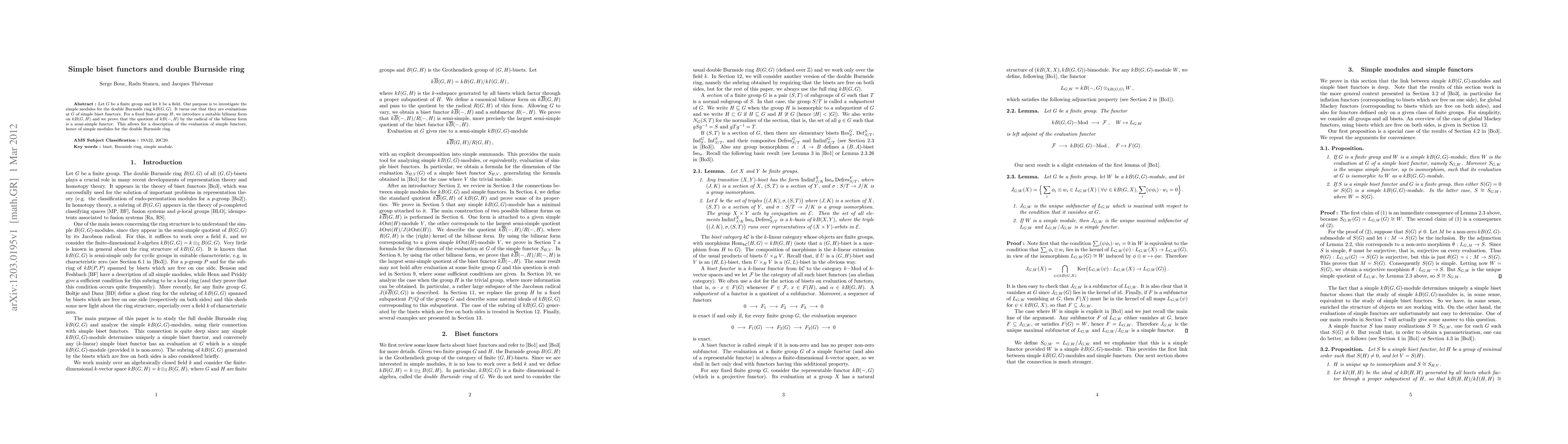 This paper investigates the simple modules of the double Burnside ring kB(G,G) and finds they are evaluations at G of simple biset functors, allowing for a description of simple modules.