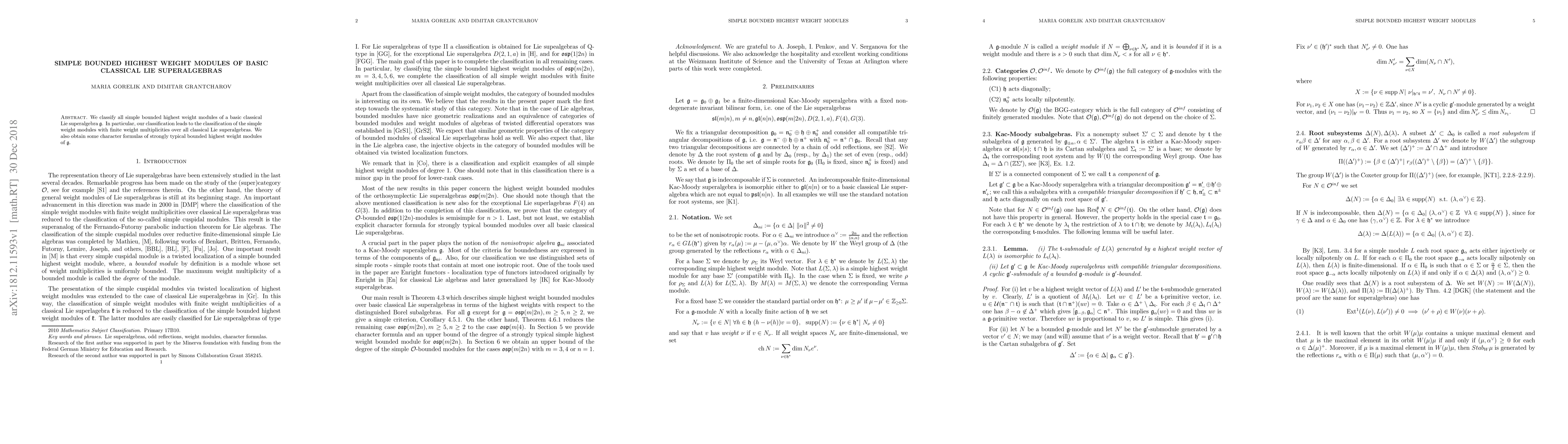 This paper classifies all simple bounded highest weight modules of basic classical Lie superalgebras $\mathfrak g$, resulting in a classification of simple weight modules with finite weight multiplicities over all classical Lie superalgebras, and provides character formulas for strongly typical bounded highest weight modules.