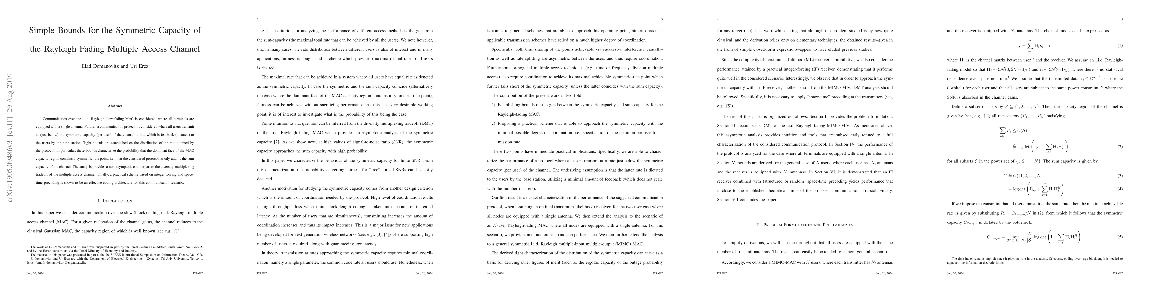This paper establishes tight bounds on the distribution of rates in a Rayleigh fading multiple access channel where users transmit at symmetric capacity. It characterizes the probability that the protocol achieves the sum capacity, providing a non-asymptotic analysis of the diversity-multiplexing tradeoff, and proposes a practical scheme for effective communication.