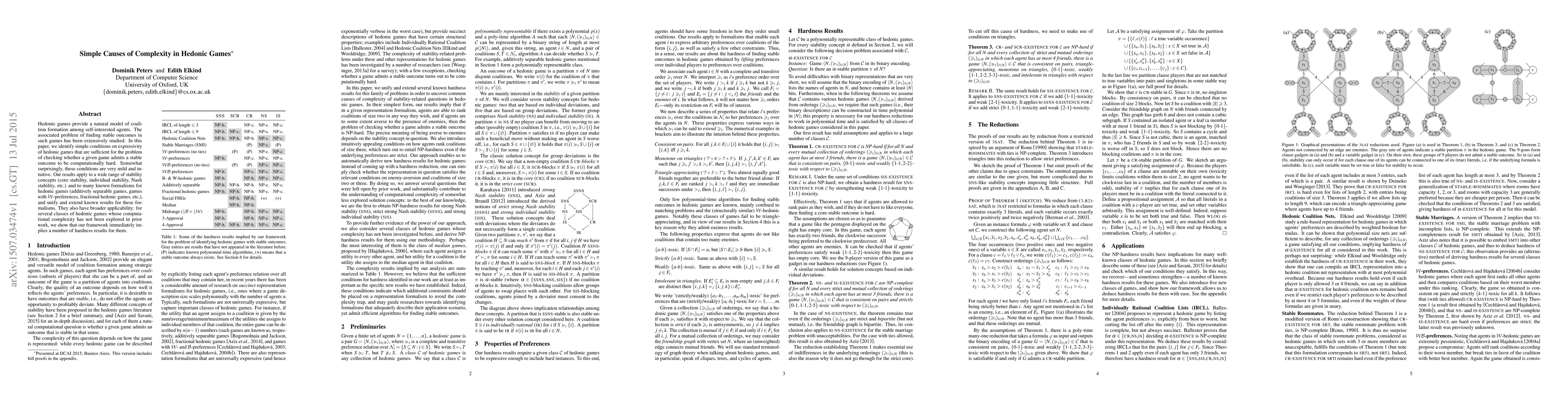 A framework is developed to prove NP-hardness of α-existence for various choices of α and C, indicating which features of hedonic games may lead to tractability of stability-related problems.