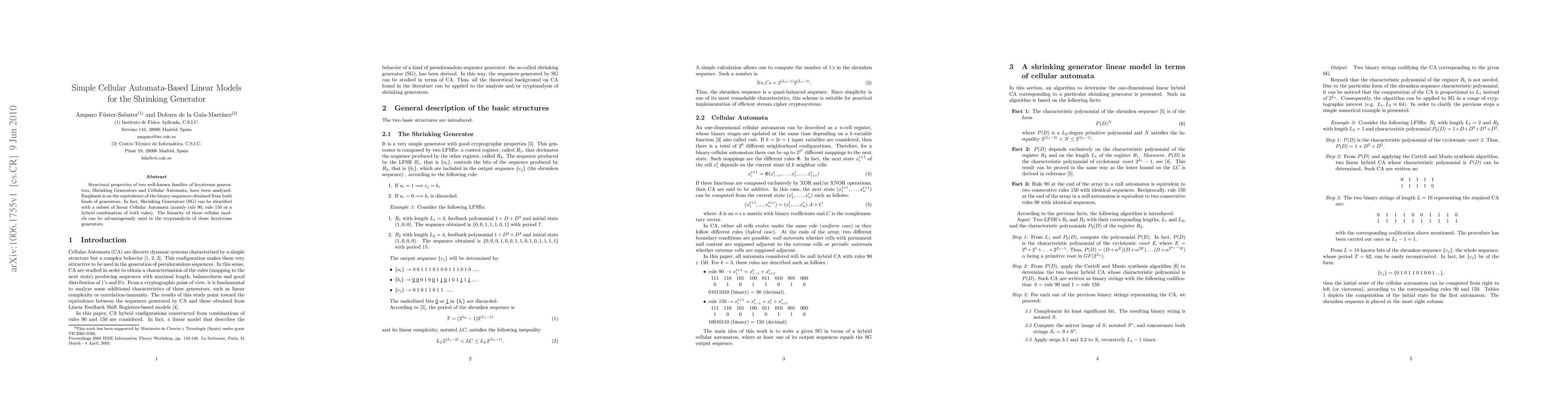 This research explores the structural equivalence between Shrinking Generators and specific types of linear Cellular Automata, primarily rule 90, rule 150, or hybrid combinations. It reveals that SGs can be identified as a subset of these linear CA models, which can be leveraged for cryptanalysis of keystream generators.