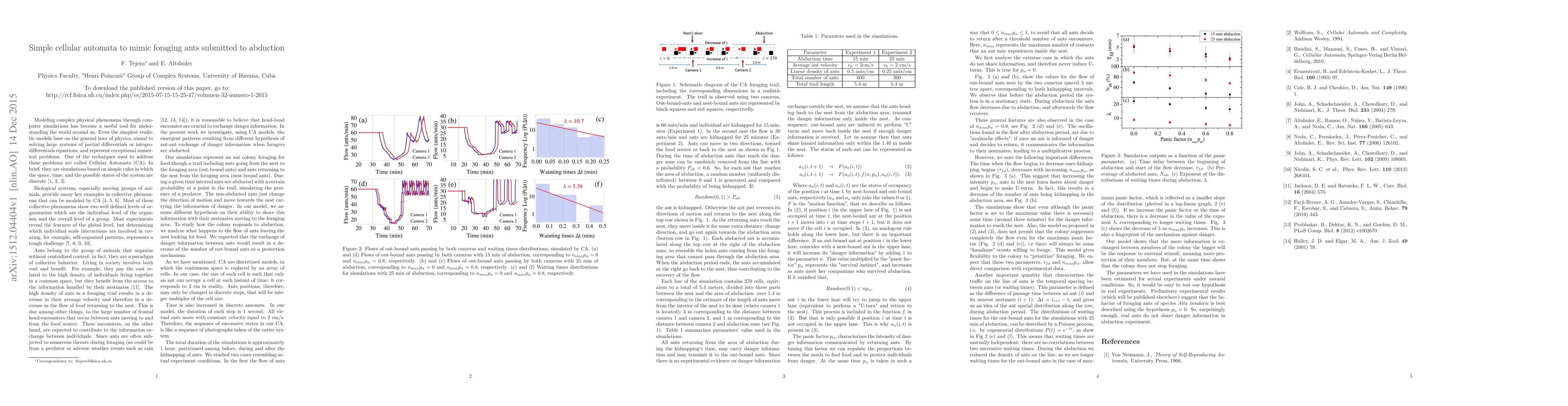 This paper constructs simple cellular automata models to simulate foraging ants facing localized abduction threats. The study explores different protocols for transmitting danger information, including the hypothesis of no transmission, and compares these against actual experimental data from the species Atta insularis, suggesting that no transmission best describes their behavior.