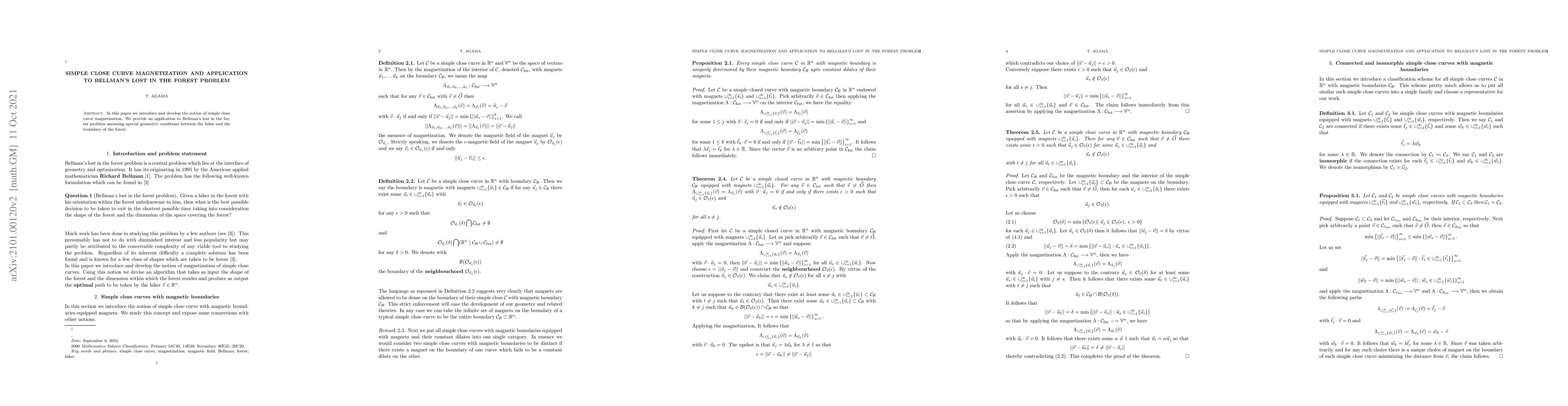 In this paper we introduce and develop the notion of simple close curve magnetization. We provide an application to Bellman's lost in the forest problem assuming special geometric conditions between the hiker and the boundary of the forest.