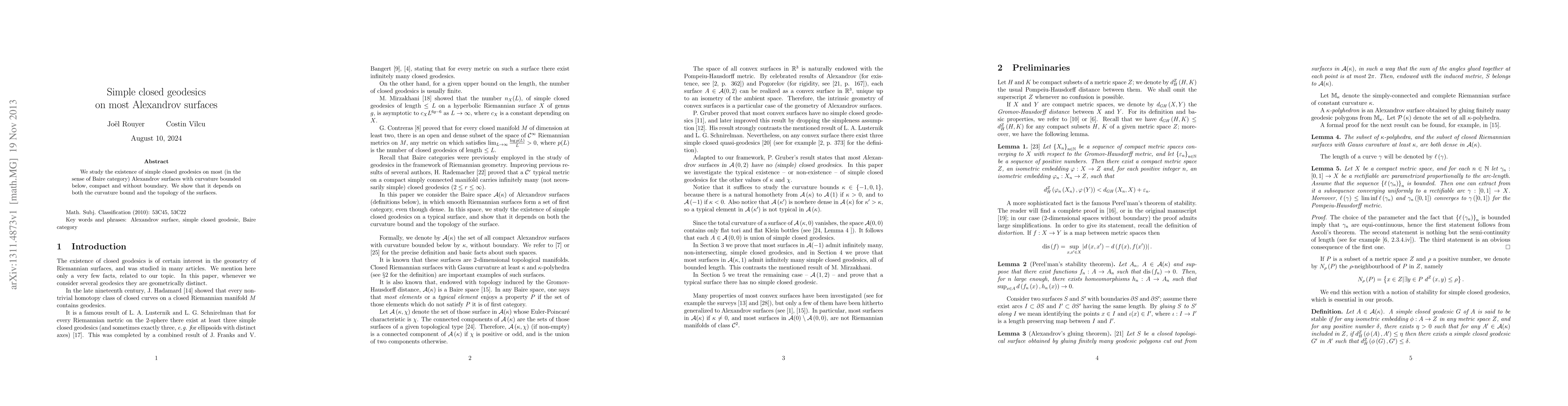 This paper investigates the prevalence of simple closed geodesics on most Alexandrov surfaces with positive curvature bounds, demonstrating that their existence hinges on both the curvature constraints and the topological characteristics of the surfaces.