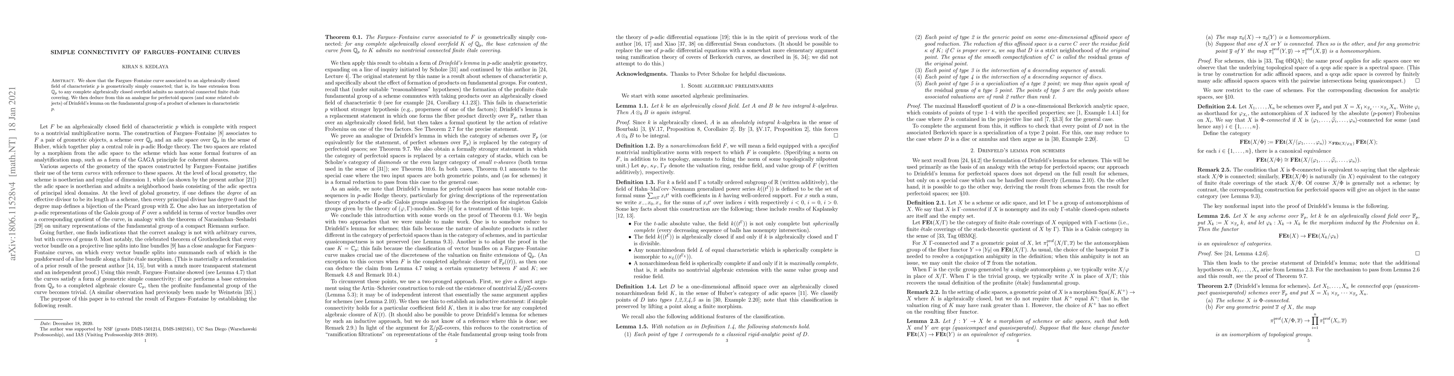 We show that the Fargues--Fontaine curve associated to an algebraically closed field of characteristic p is geometrically simply connected; that is, its base extension from Q_p to any complete algebraically closed overfield admits no nontrivial connected finite etale covering. We then deduce from this an analogue for perfectoid spaces (and some related objects) of Drinfeld's lemma on the fundamental group of a product of schemes in characteristic p.
