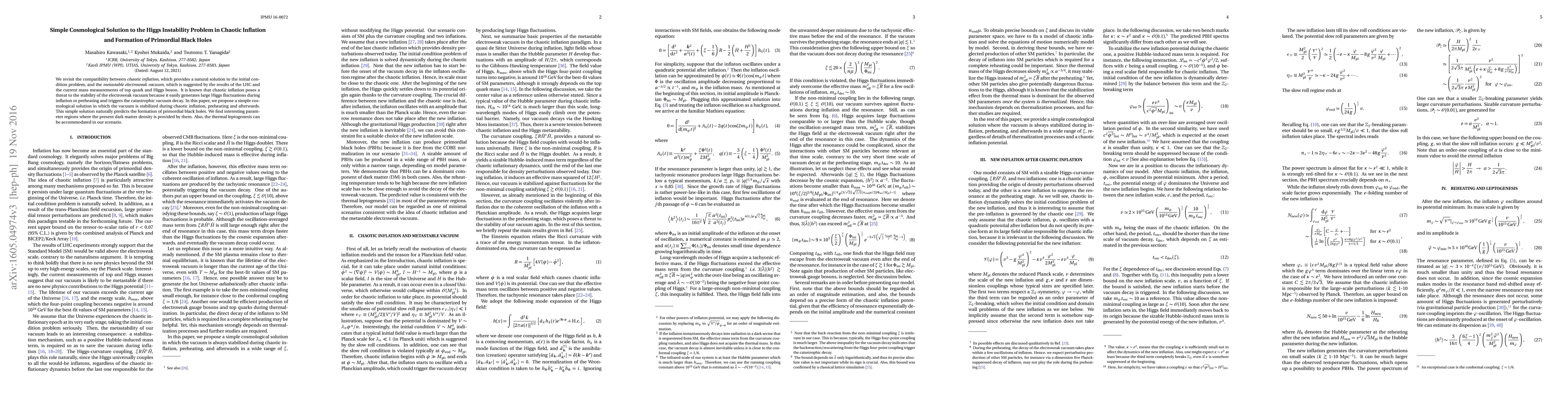 This paper proposes a cosmological solution to stabilize the metastable electroweak vacuum during chaotic inflation, preventing vacuum decay. It also predicts the formation of primordial black holes, which could contribute to the present dark matter density, and accommodates thermal leptogenesis.