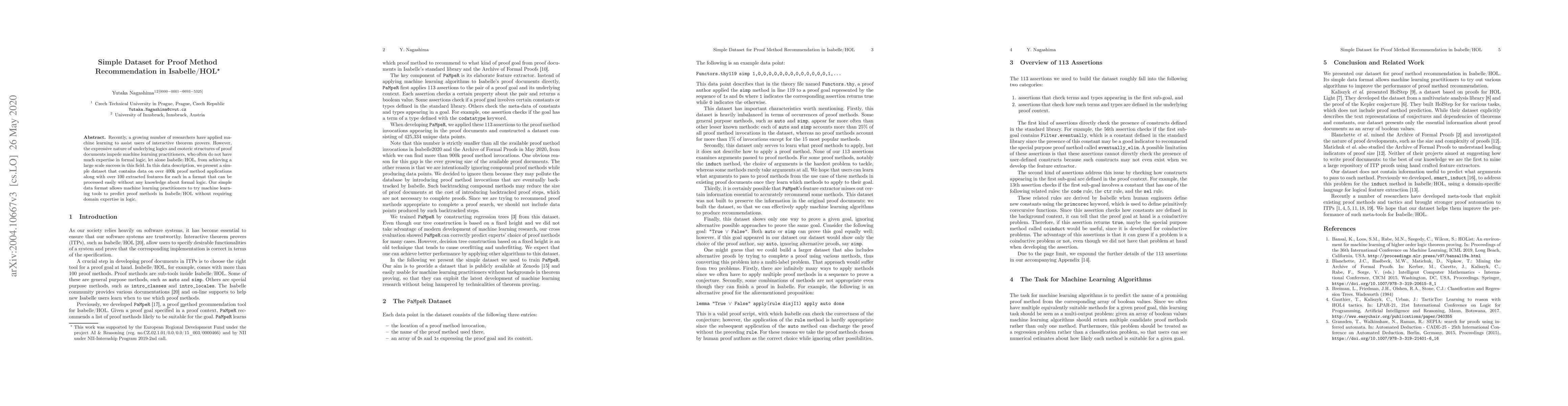 The 400k-proof-method-applications dataset provides easy-to-process data for machine learning tools to aid users of interactive theorem provers.
