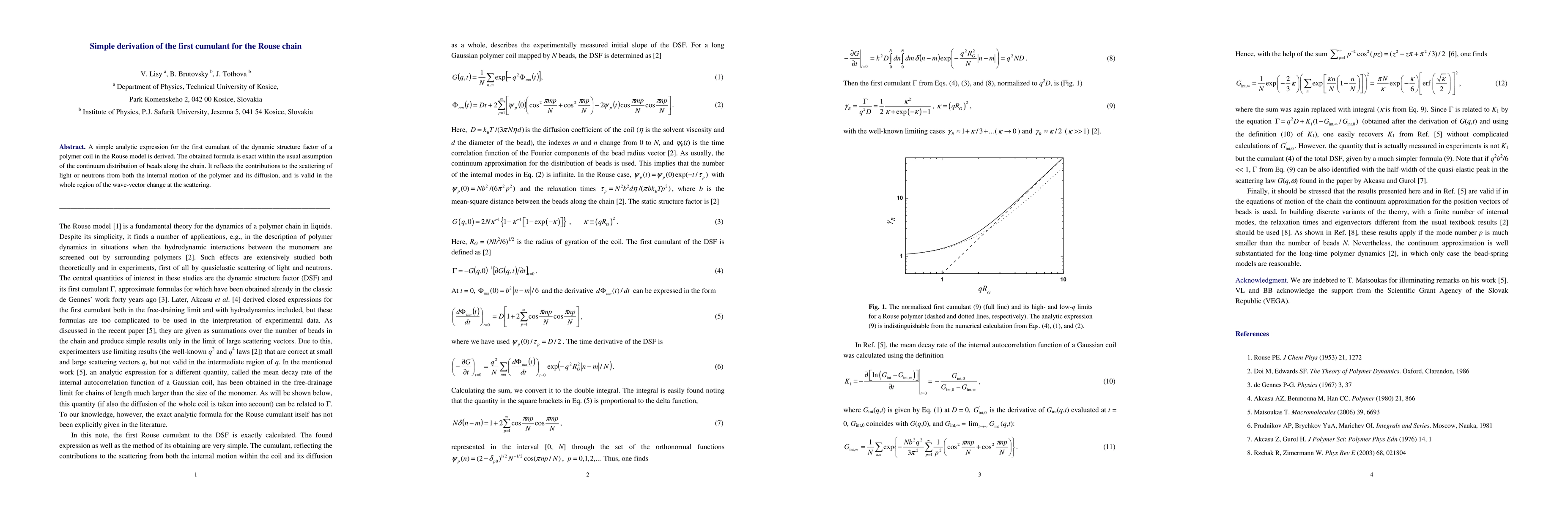 A simple analytic expression for the first cumulant of the dynamic structure factor of a polymer coil in the Rouse model is derived. The obtained formula is exact within the usual assumption of the continuum distribution of beads along the chain. It reflects the contributions to the scattering of light or neutrons from both the internal motion of the polymer and its diffusion, and is valid in the whole region of the wave-vector change at the scattering.