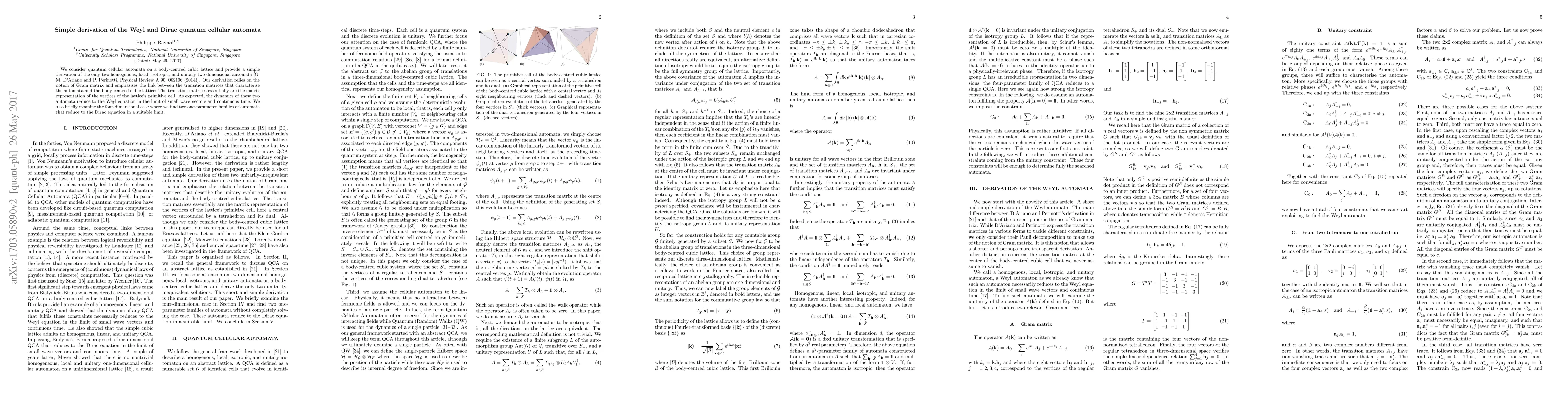 We consider quantum cellular automata on a body-centred cubic lattice and provide a simple derivation of the only two homogenous, local, isotropic, and unitary two-dimensional automata [G. M. D'Ariano and P. Perinotti, Physical Review A 90, 062106 (2014)]. Our derivation relies on the notion of Gram matrix and emphasises the link between the transition matrices that characterise the automata and the body-centred cubic lattice: The transition matrices essentially are the matrix representation of the vertices of the lattice's primitive cell. As expected, the dynamics of these two automata reduce to the Weyl equation in the limit of small wave vectors and continuous time. We also briefly examine the four-dimensional case where we find two one-parameter families of automata that reduce to the Dirac equation in a suitable limit.