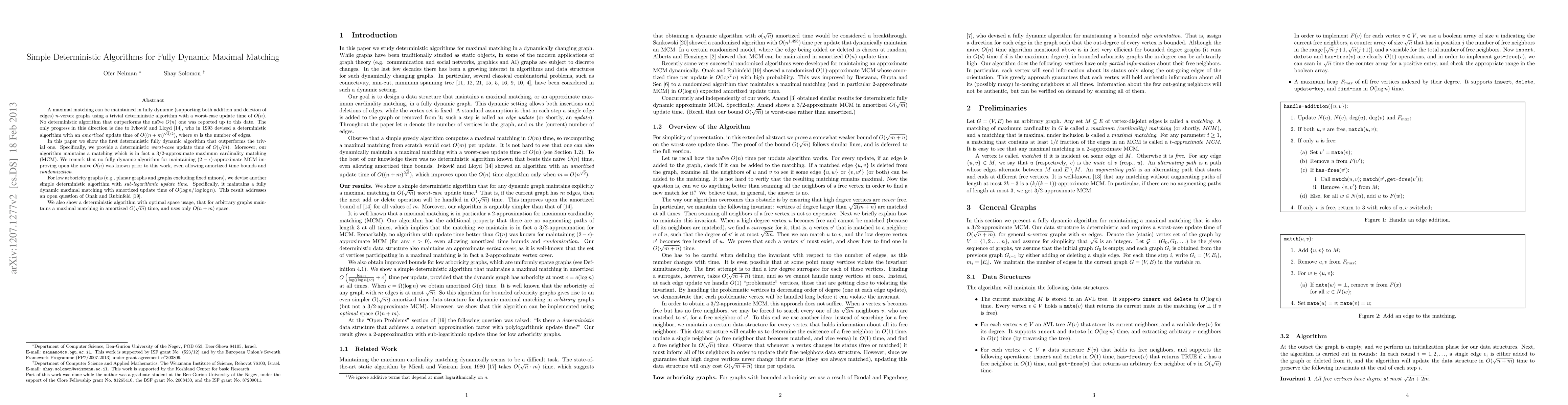 This paper presents the first deterministic fully dynamic algorithm that outperforms the trivial O(n) update time for maintaining maximal matchings, achieving O(√m) worst-case update time. It also introduces algorithms for low arboricity graphs with sub-logarithmic update time and maintains maximal matchings with optimal space usage.