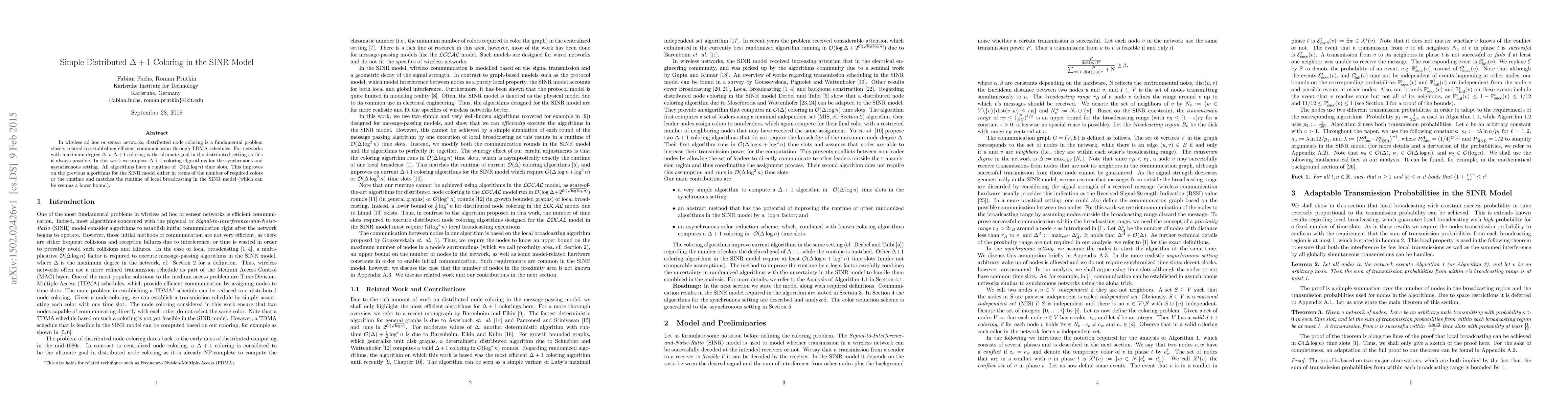 This paper proposes improved Delta + 1 coloring algorithms for wireless ad hoc networks in the SINR model, achieving runtimes of O(Delta log n) time slots, which enhances previous algorithms in terms of both runtime and efficiency.
