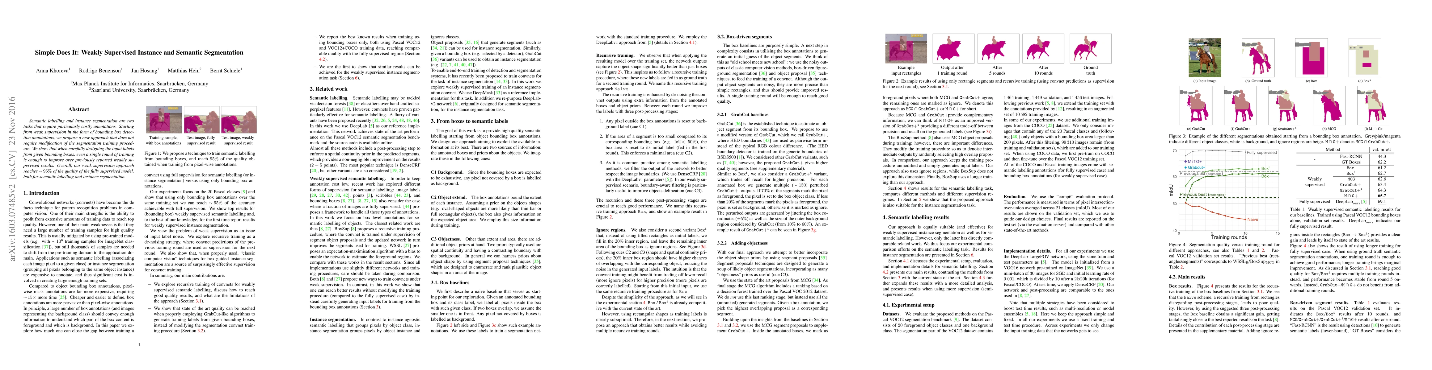 This research is significant as it provides new insights into training pixel-labeling convolutional networks from bounding box annotations only, achieving state-of-the-art performance without modifying the segmentation network training procedure.