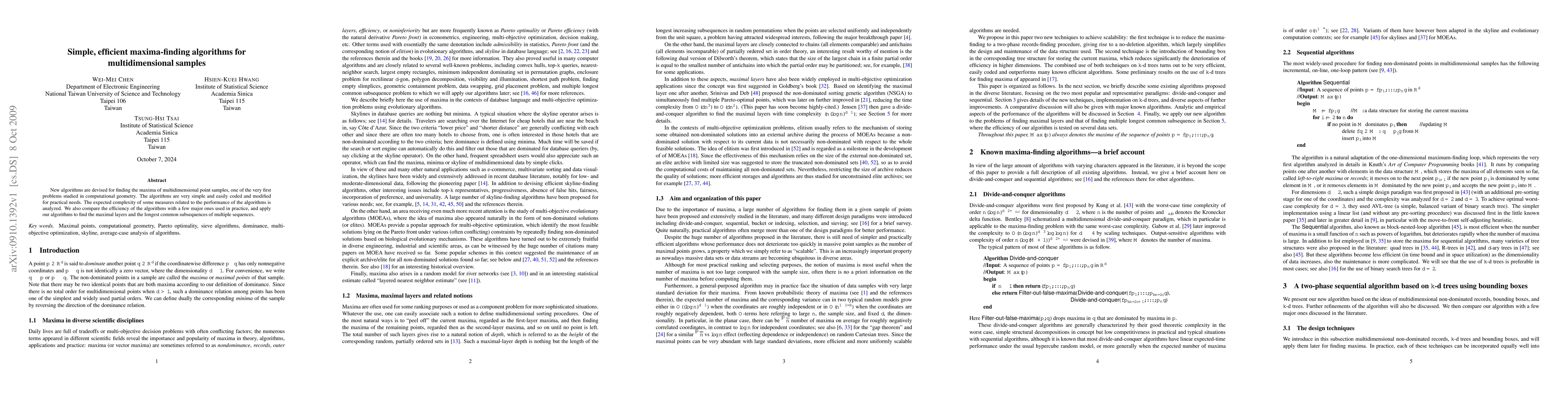 New algorithms have been developed to find maxima in multidimensional samples with simple and efficient code, offering practical solutions for various applications.