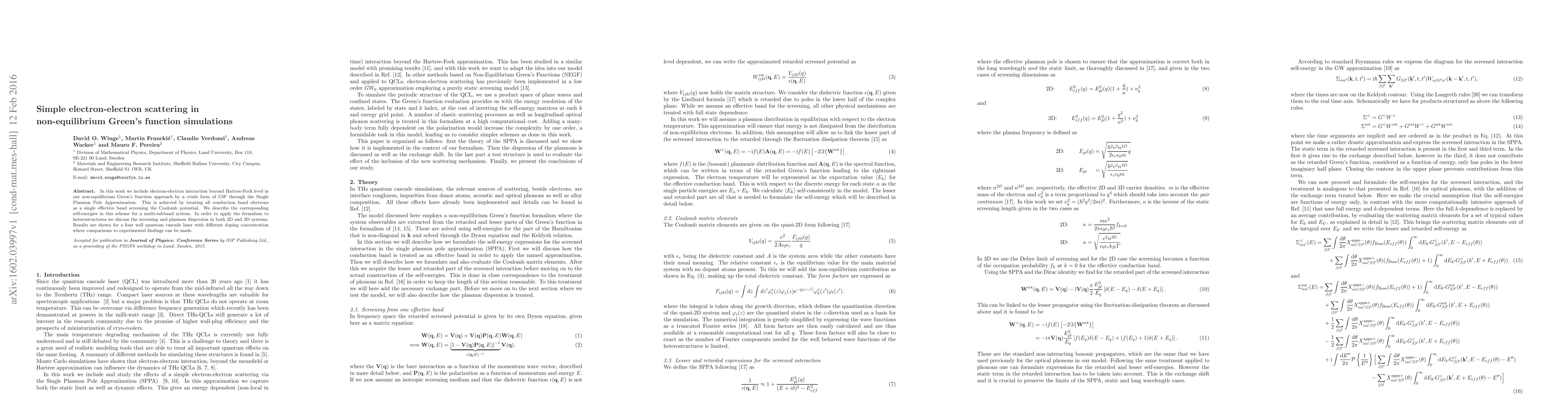 In this work we include electron-electron interaction beyond Hartree-Fock level in our non-equilibrium Green's function approach by a crude form of GW through the Single Plasmon Pole Approximation. This is achieved by treating all conduction band electrons as a single effective band screening the Coulomb potential. We describe the corresponding self-energies in this scheme for a multi-subband system. In order to apply the formalism to heterostructures we discuss the screening and plasmon dispersion in both 2D and 3D systems. Results are shown for a four well quantum cascade laser with different doping concentration where comparisons to experimental findings can be made.