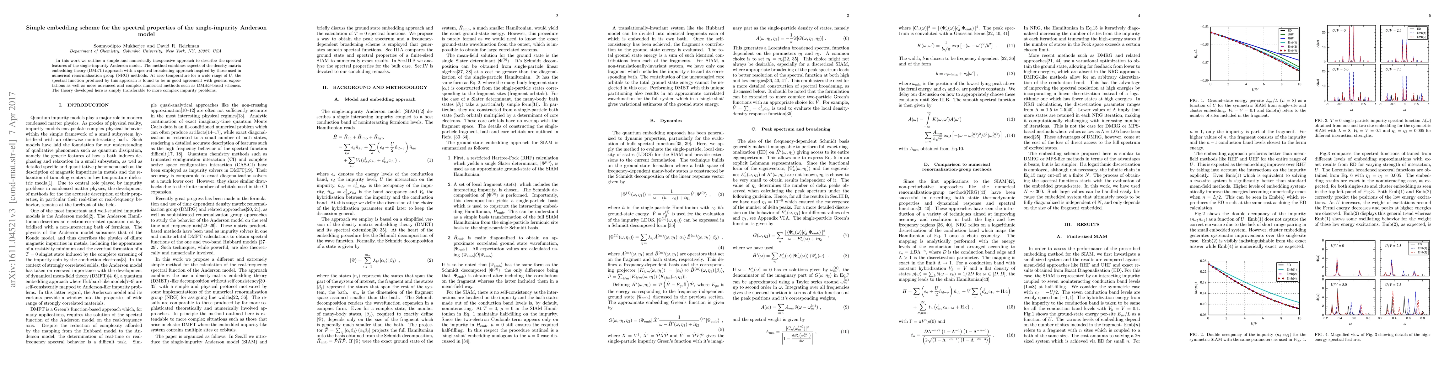 The paper presents a simple and numerically inexpensive approach to describe the spectral features of the Single-Impurity Anderson Model (SIAM), combining aspects of density matrix embedding theory (DMET) with spectral broadening methods from numerical renormalization group (NRG) techniques.