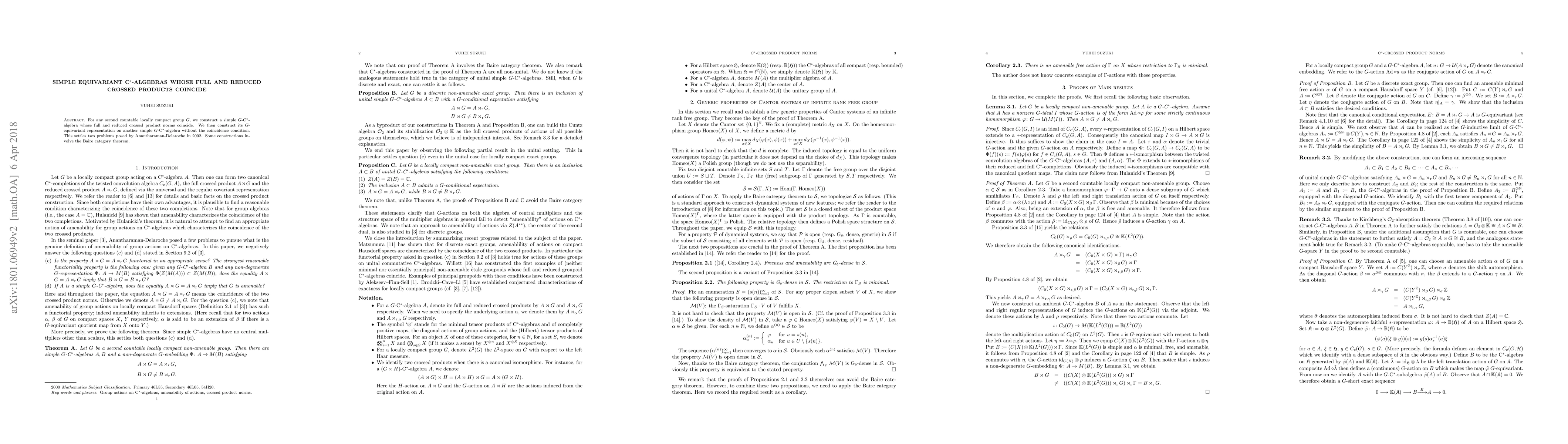 For any second countable locally compact group G, we construct a simple G-C*-algebra whose full and reduced crossed product norms coincide. We then construct its G-equivariant representation on another simple G-C*-algebra without the coincidence condition. This settles two problems posed by Anantharaman-Delaroche in 2002. Some constructions involve the Baire category theorem.