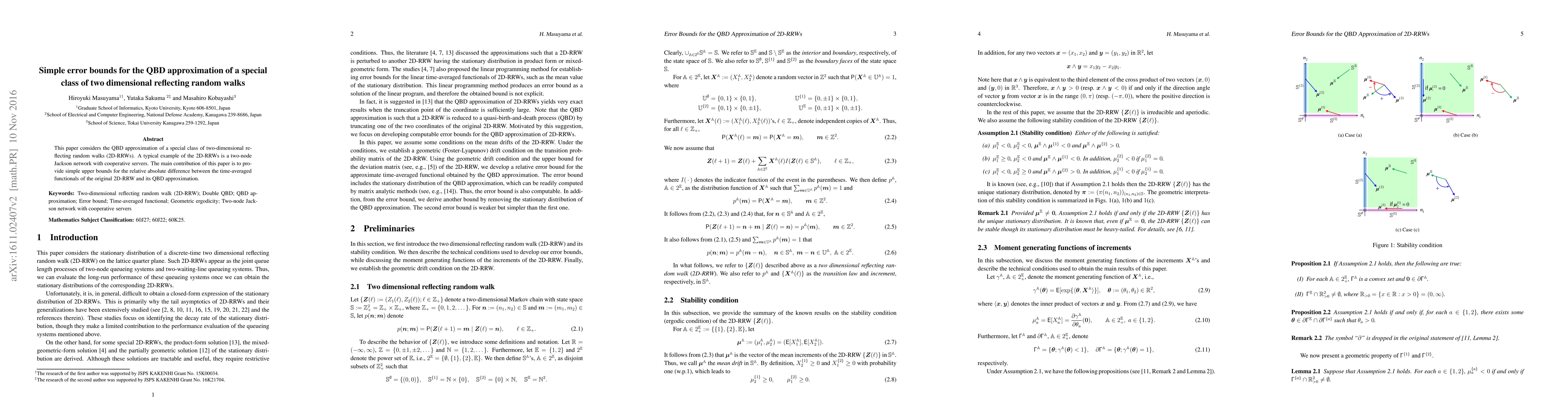 This paper considers the QBD approximation of a special class of two-dimensional reflecting random walks (2D-RRWs). A typical example of the 2D-RRWs is a two-node Jackson network with cooperative servers. The main contribution of this paper is to provide simple upper bounds for the relative absolute difference between the time-averaged functionals of the original 2D-RRW and its QBD approximation.
