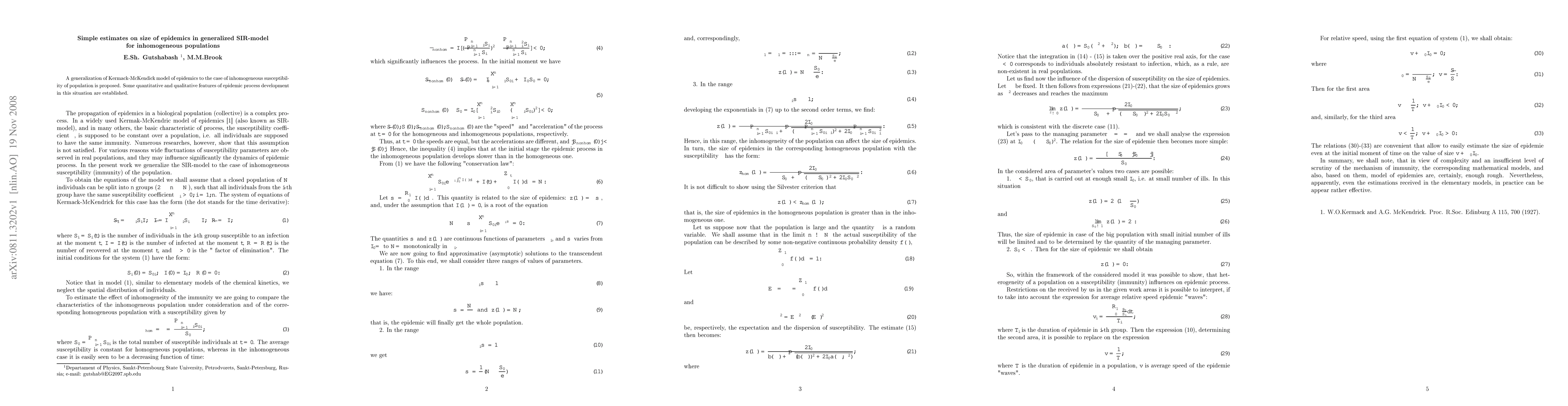 A generalization of Kermack-McKendick model of epidemics to the case of inhomogeneous susceptibility of population is proposed. Some quantitative and qualitative features of epidemic process development in this situation are established.