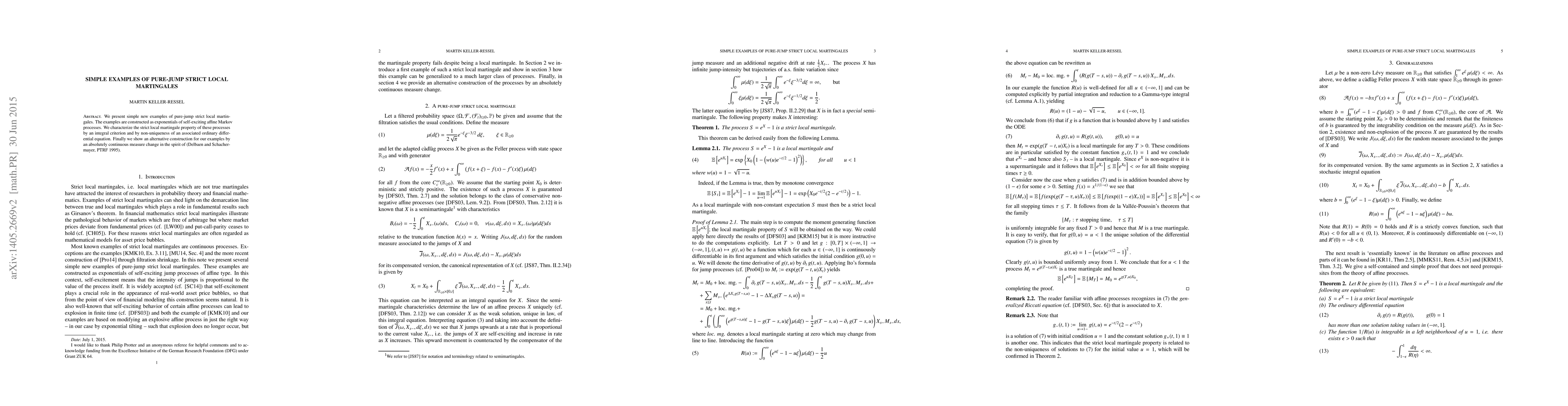 This paper introduces simple examples of pure-jump strict local martingales constructed from exponentials of self-exciting affine Markov processes. It characterizes these martingales via an integral criterion and non-uniqueness of associated ODEs, and provides an alternative construction using an absolutely continuous measure change.