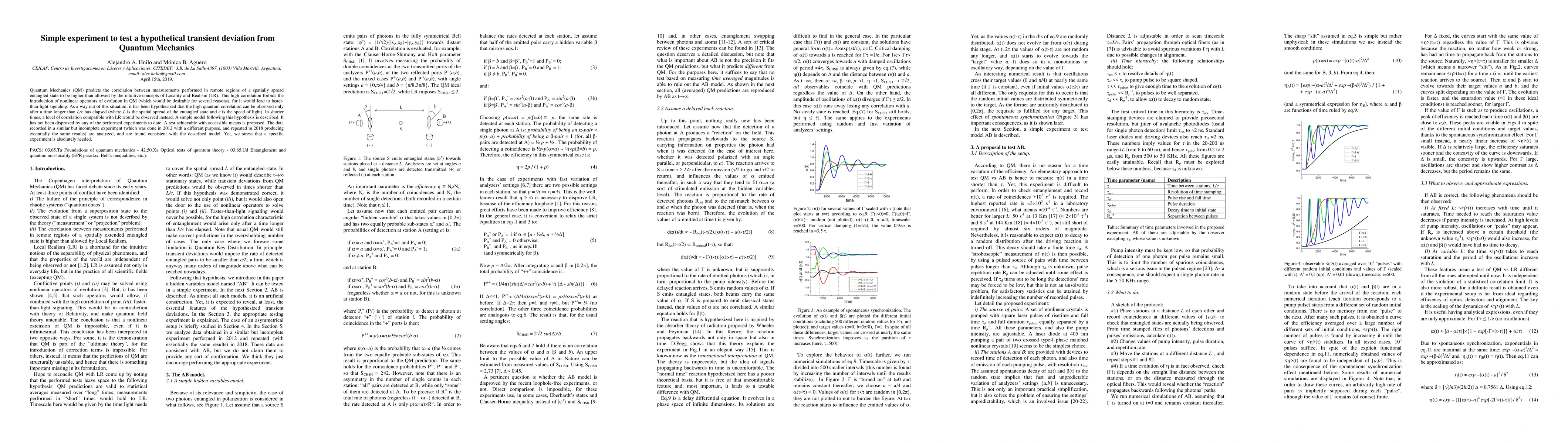 This paper proposes a simple experiment to test a hypothesis suggesting transient deviations from Quantum Mechanics, where high correlations in entangled states may only emerge after a delay longer than light's travel time across the entangled region. Analysis of past experiments supports this model, but a dedicated test is required to confirm it.