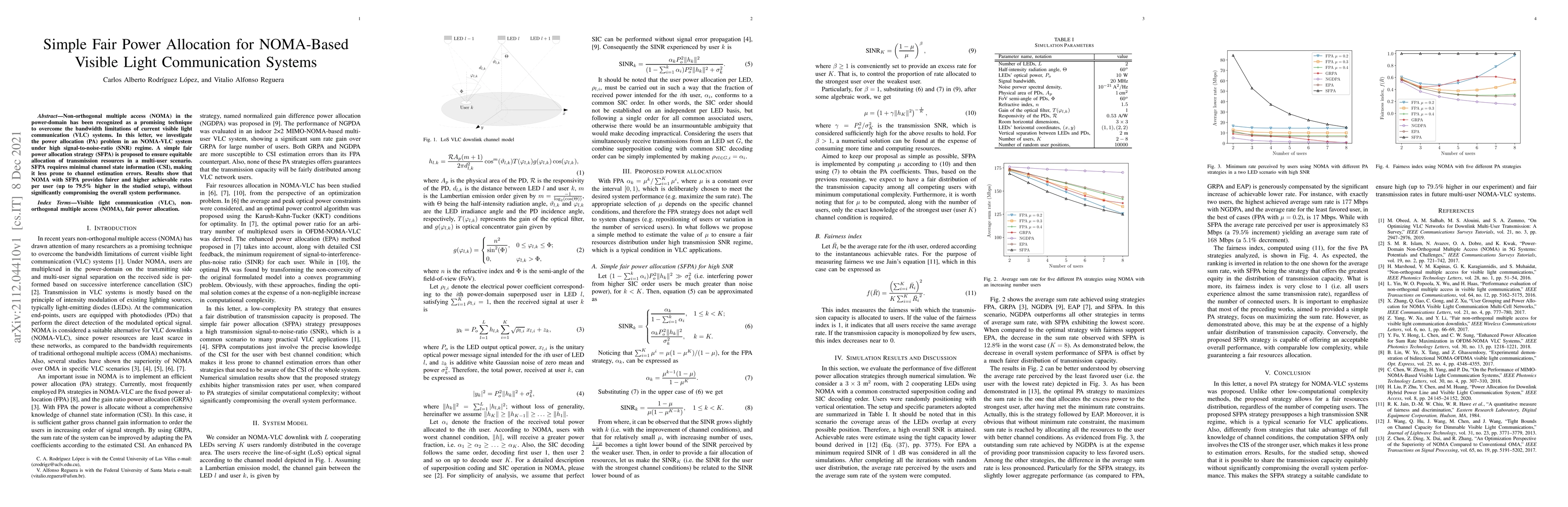 This paper proposes a simple fair power allocation strategy for NOMA-based visible light communication systems to ensure equitable resource distribution among users with minimal channel state information, resulting in up to 79.5% higher achievable rates per user under high SNR conditions. The strategy maintains overall system performance while enhancing fairness.