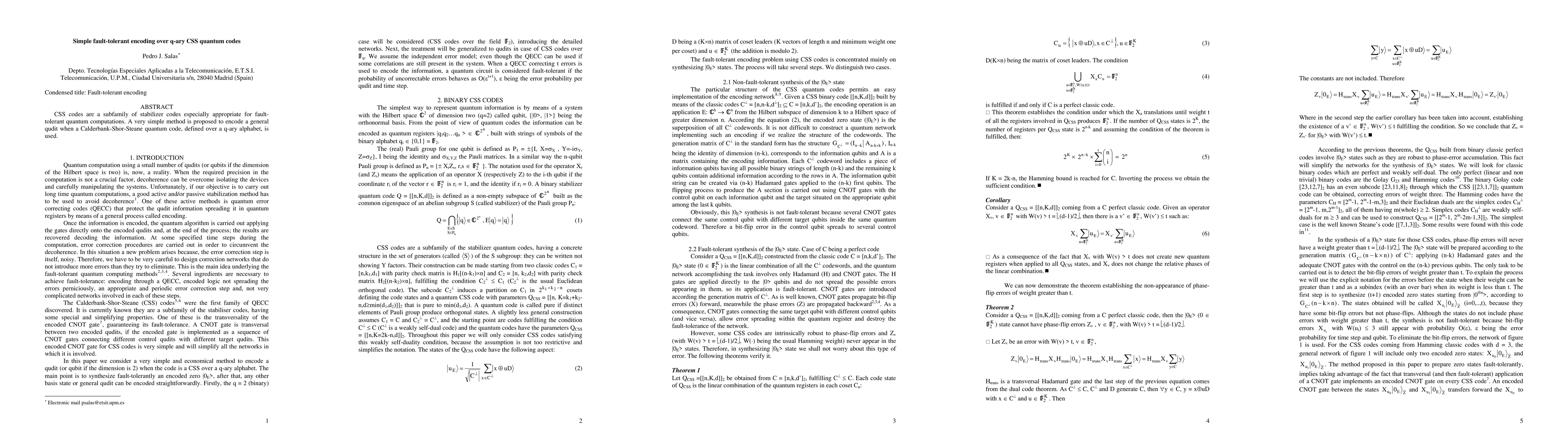The paper proposes a simple method for fault-tolerant encoding using q-ary Calderbank-Shor-Steane (CSS) quantum codes, applicable to general qudits.