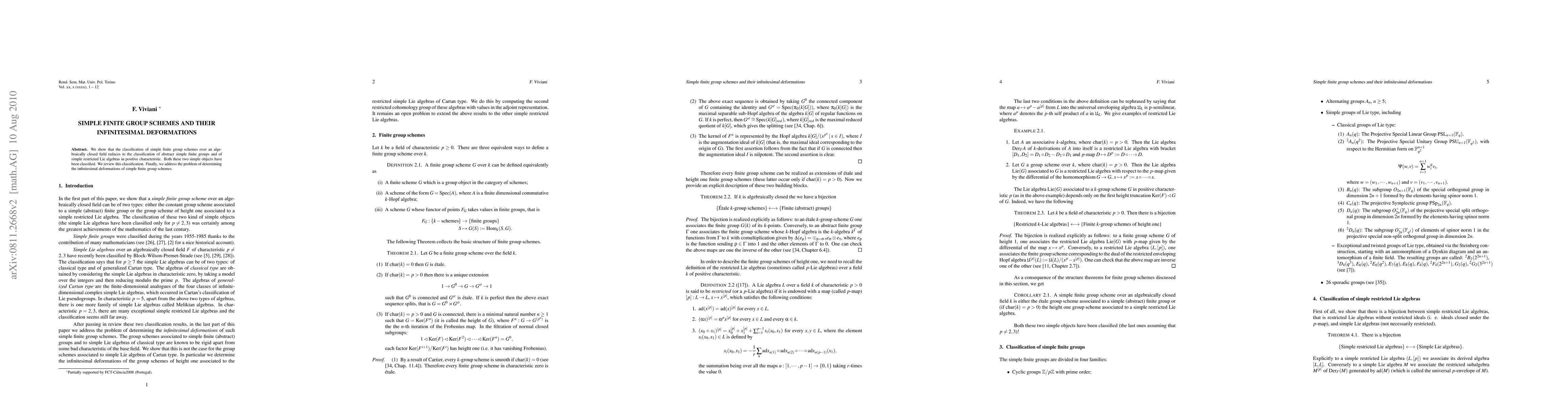 This paper classifies simple finite group schemes over an algebraically closed field by linking them to classified simple finite groups and simple restricted Lie algebras. It also explores the infinitesimal deformations of these group schemes.