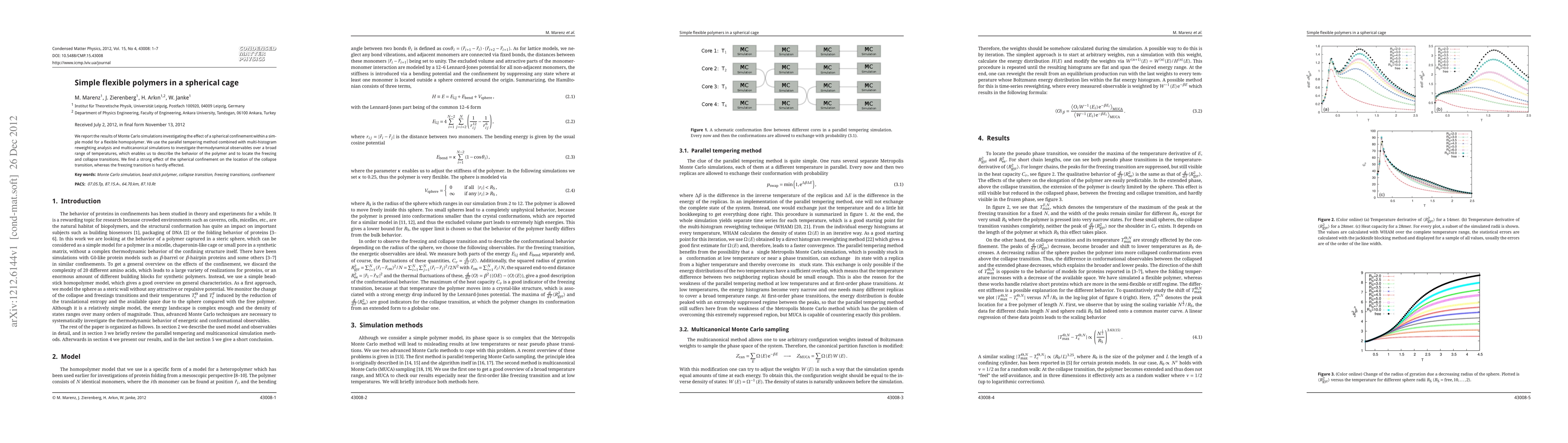 We report the results of Monte Carlo simulations investigating the effect of a spherical confinement within a simple model for a flexible homopolymer. We use the parallel tempering method combined with multi-histogram reweighting analysis and multicanonical simulations to investigate thermodynamical observables over a broad range of temperatures, which enables us to describe the behavior of the polymer and to locate the freezing and collapse transitions. We find a strong effect of the spherical confinement on the location of the collapse transition, whereas the freezing transition is hardly effected.