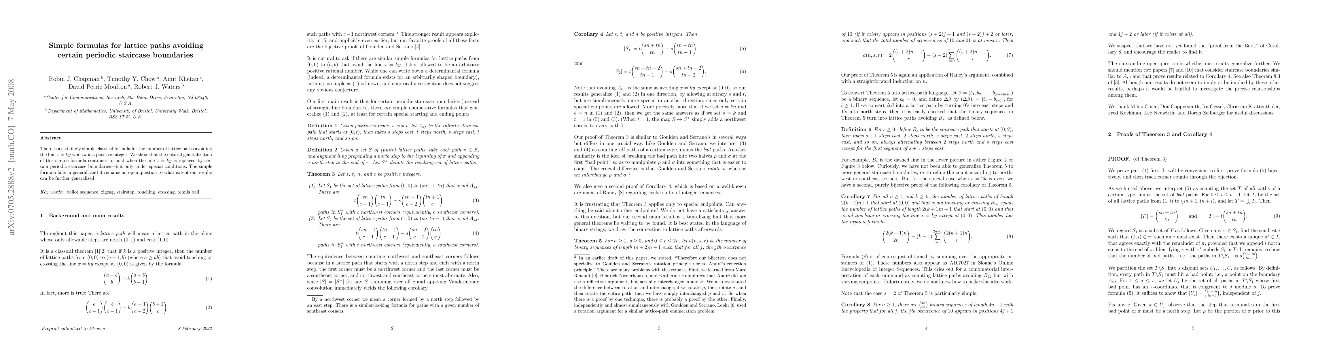 There is a strikingly simple classical formula for the number of lattice paths avoiding the line x = ky when k is a positive integer. We show that the natural generalization of this simple formula continues to hold when the line x = ky is replaced by certain periodic staircase boundaries--but only under special conditions. The simple formula fails in general, and it remains an open question to what extent our results can be further generalized.