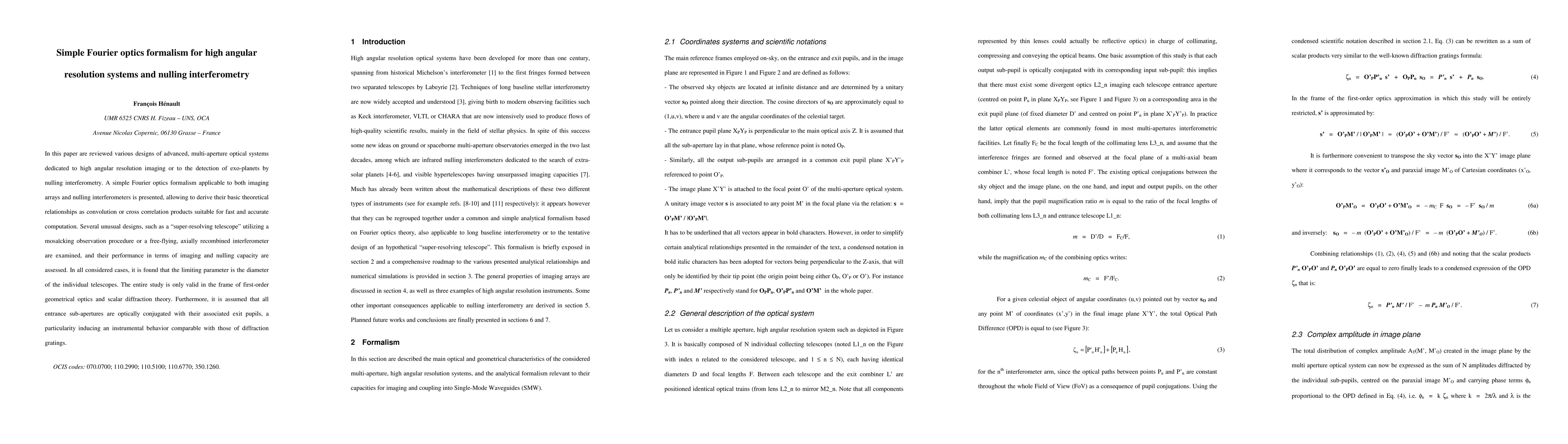 This paper presents a simple Fourier optics formalism for high angular resolution systems and nulling interferometry, focusing on designs such as super-resolving telescopes and free-flying interferometers, with the limiting factor found to be telescope diameter.