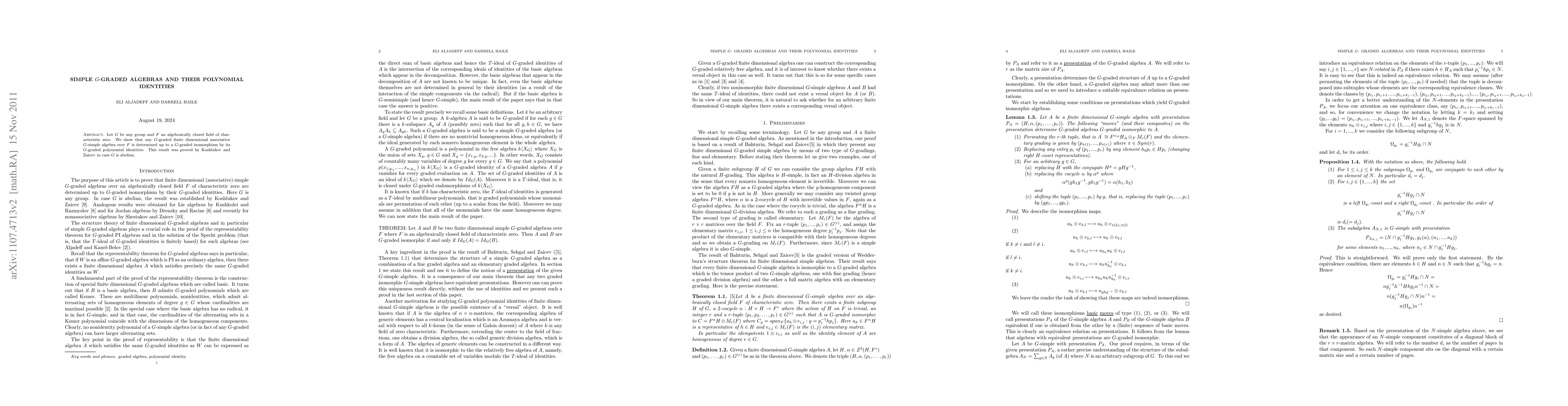 Let G be any group and F an algebraically closed field of characteristic zero. We show that any G-graded finite dimensional associative G-simple algebra over F is determined up to a G-graded isomorphism by its G-graded polynomial identities. This result was proved by Koshlukov and Zaicev in case G is abelian.