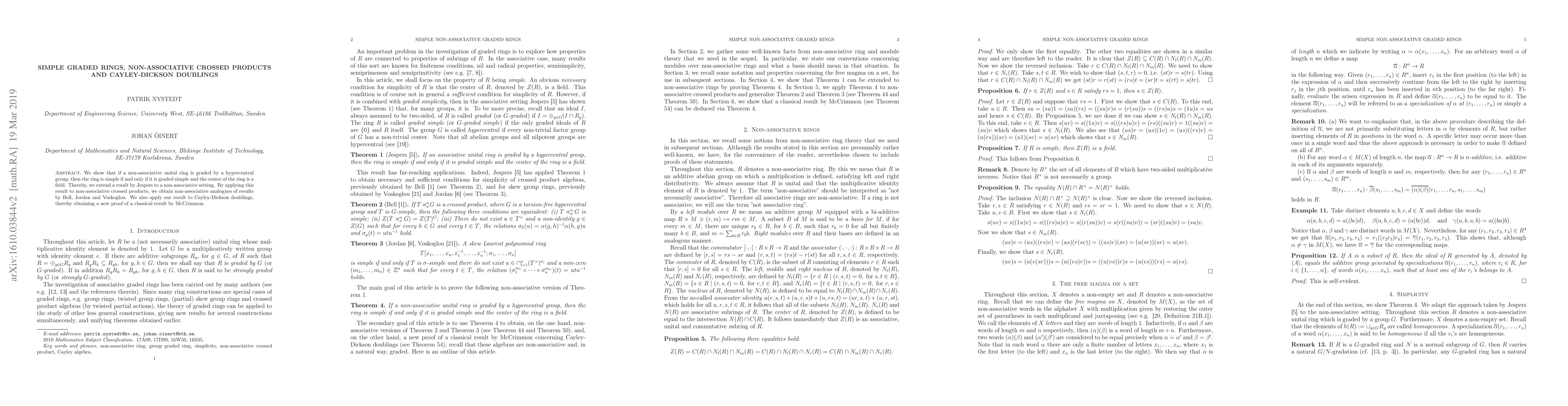 This paper demonstrates that a non-associative unital ring graded by a hypercentral group is simple if and only if it is graded simple and its center is a field. It extends a known result to non-associative structures and applies the findings to non-associative crossed products and Cayley-Dickson doublings, providing a new proof for a classical result by McCrimmon.